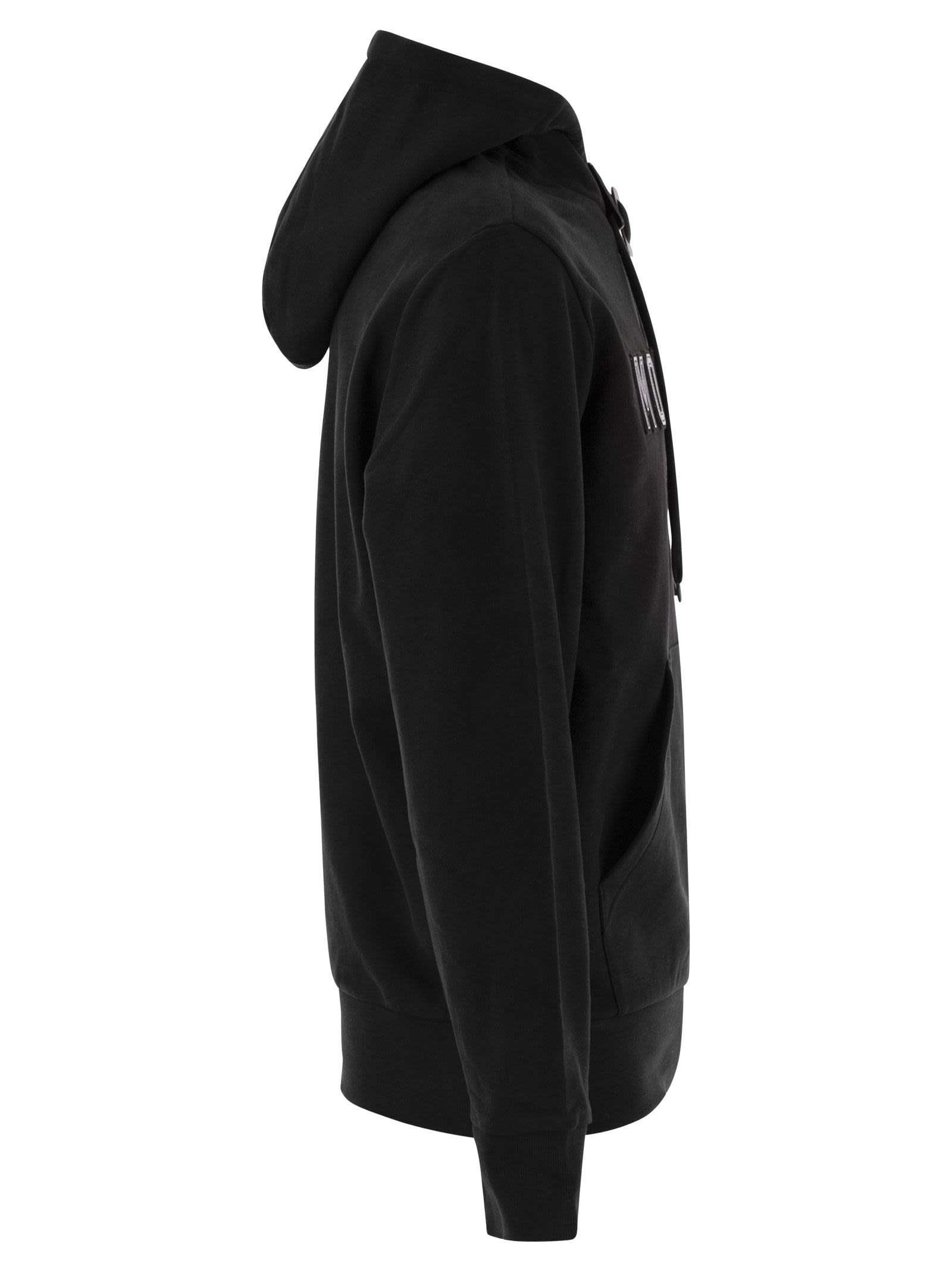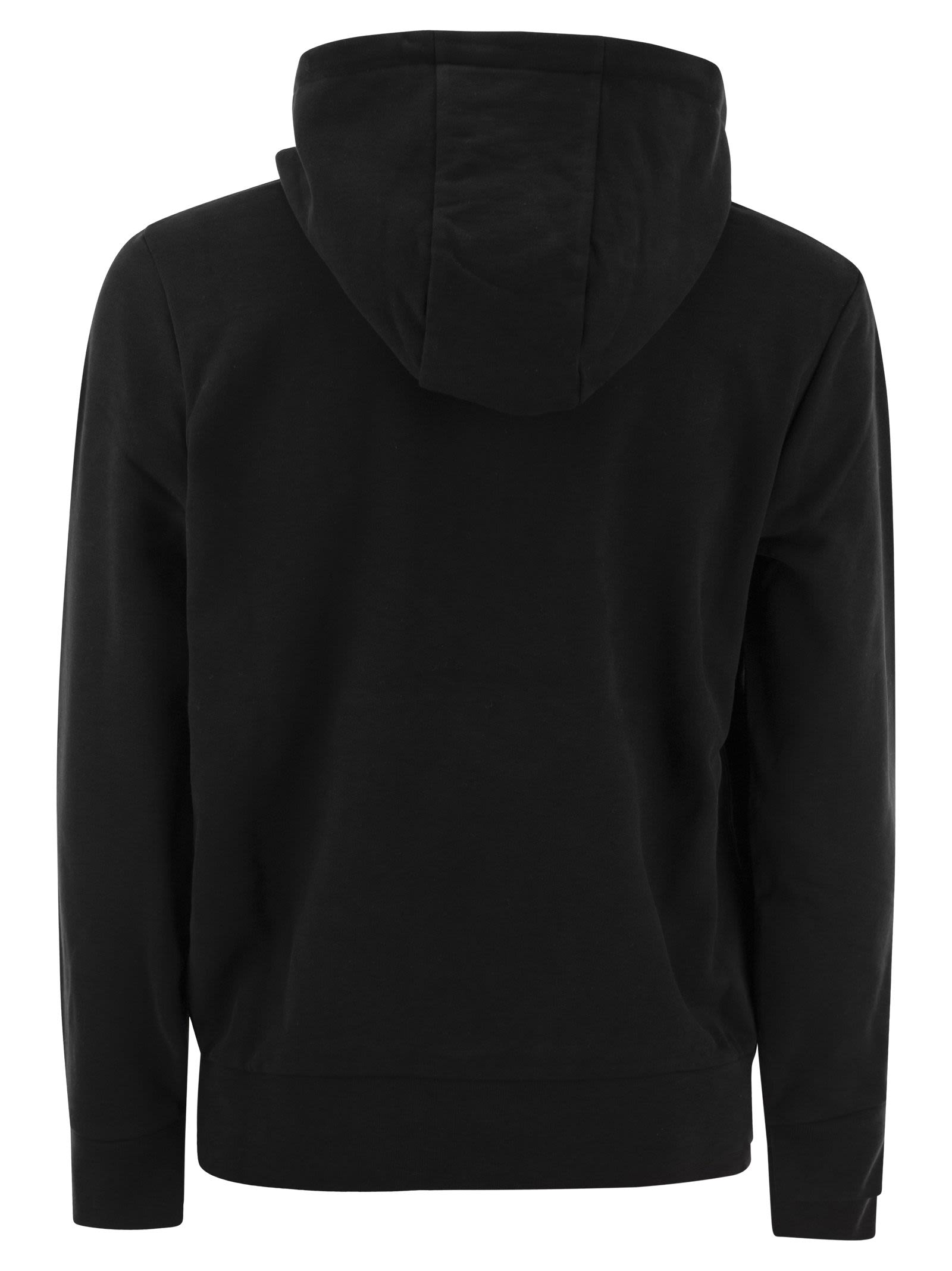 This cotton jersey hoodie features a relaxed loose fit. The garment is embellished with tone-on-tone logo patches. - Made of cotton jersey - Hood - Central pocket - Iconic logo patches in felt and synthetic materials - Iconic logo patch in synthetic materials DESIGNER ID: J10918G0003089AHE 999