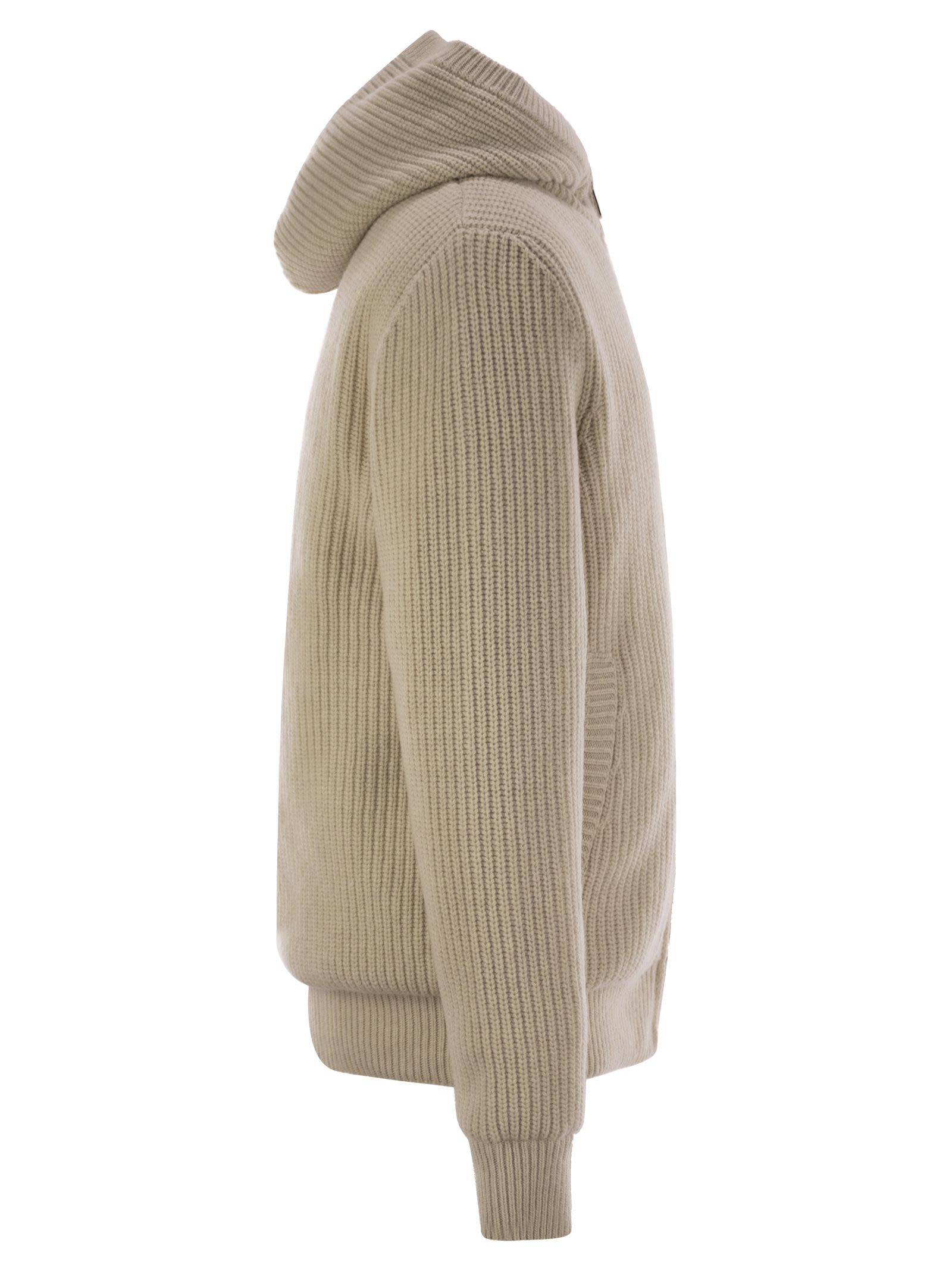 This reversible cardigan for men transcends seasons and ensures warmth all year round. The knitted garment has one side in a wool and cashmere blend, while the other is made of polyester. Also great to wear as an outerwear when the weather is milder, it boasts a padded front. - Made from a wool and cashmere blend - Polyester lining - Reversible - Padded pattern - Brioche stitch work - Fineness 5 - Hood - Zip closure - Side pockets - Iconic leather logo patch - Regular fit DESIGNER ID: J20919B00035M4281 215