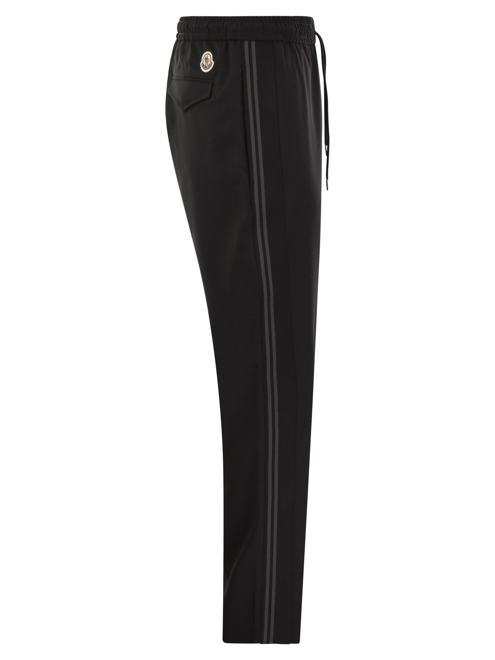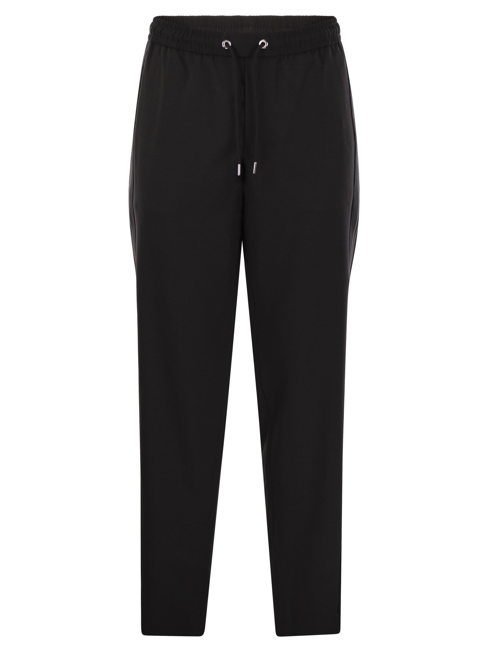 Comfortable to wear all day, these gabardine trousers feature an elasticated waist. A striped detail along the legs embellishes the model. - Drawstring waistband - Zip fastening - Slanted side pockets - Back pockets with snap button - Striped side bands with embroidered logo lettering - Iconic logo patch DESIGNER ID: J10912A00005597FV 999