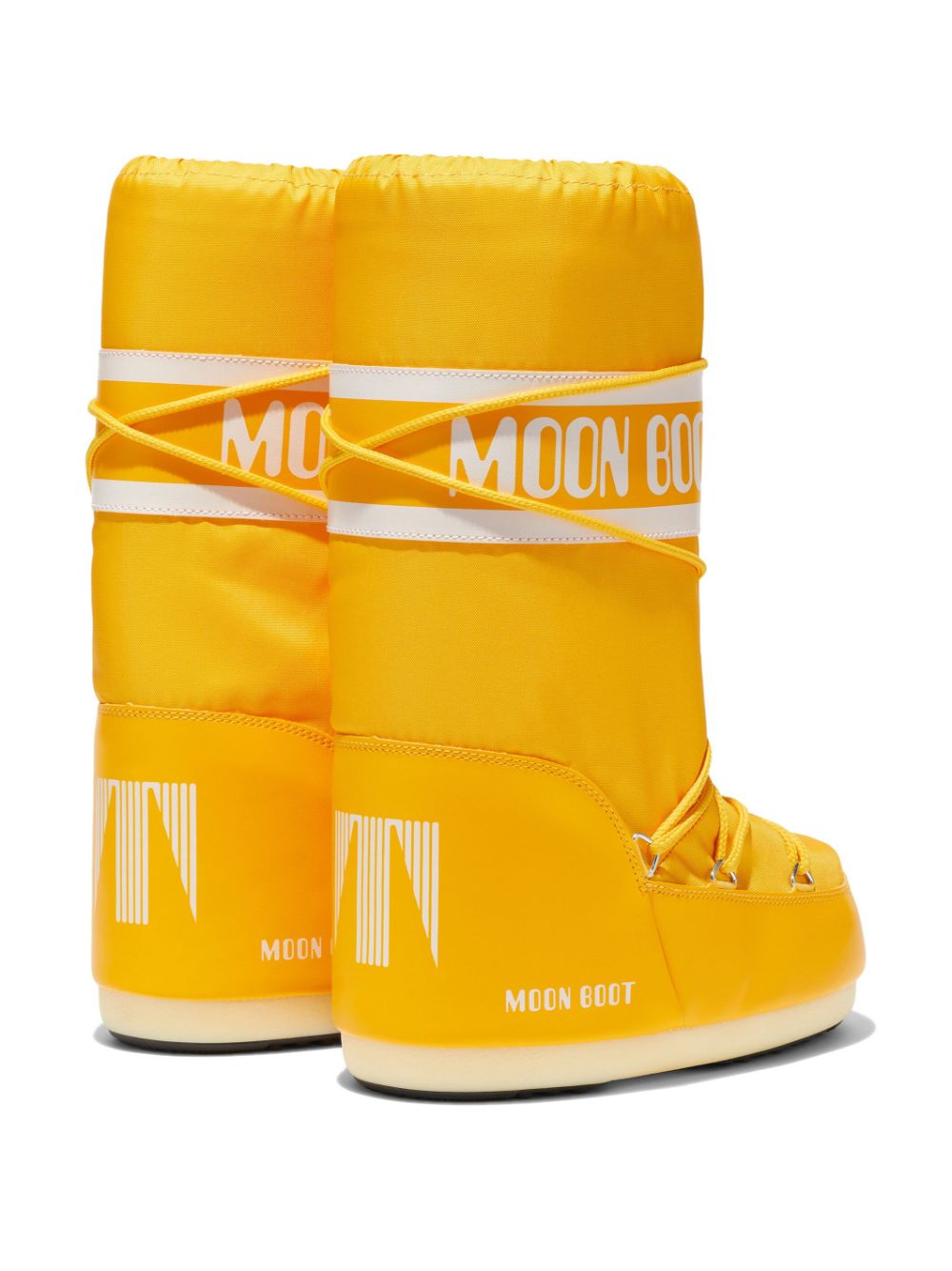 Yellow Icon snow boots from MOON BOOT featuring water-repellent finish, panelled design, logo-tape detailing, logo print to the rear, round toe, front lace-up fastening, calf-length and rubber sole.