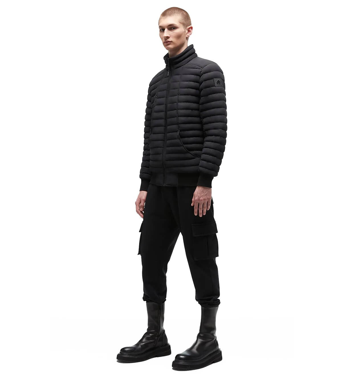 Keap bomber by Moose Knuckles made of black quilted nylon. Padded interior in down, equipped with slip pockets. Iconic logo on the left sleeve, tonal stretch fabric insert on the collar, cuffs and bottom, zip closure. Each metal Iconic logo at the sleeve is hand-selected during construction, making every piece as unique as the wearer.