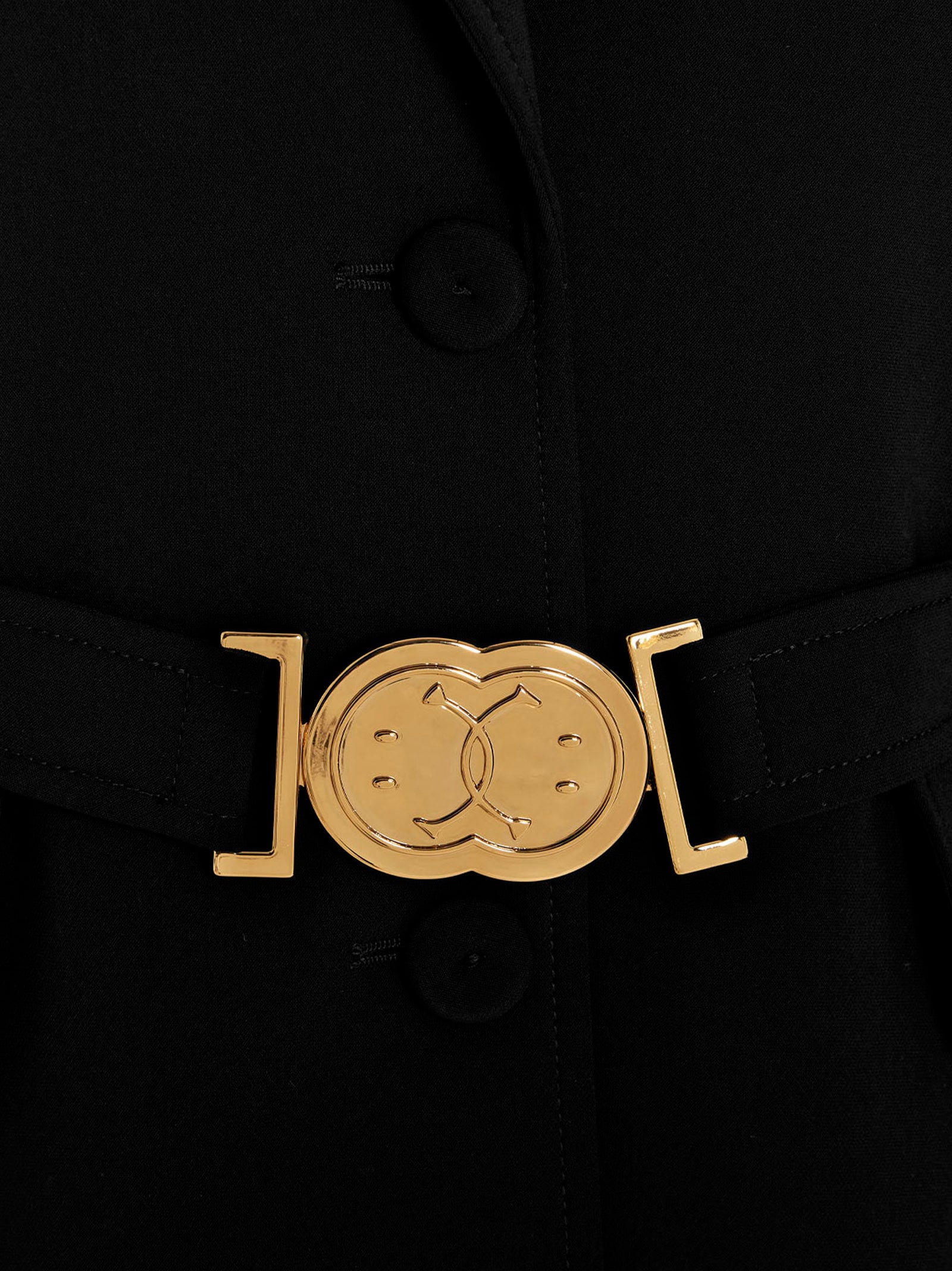Single-breasted blazer with belt detail, front buckle and buttons.