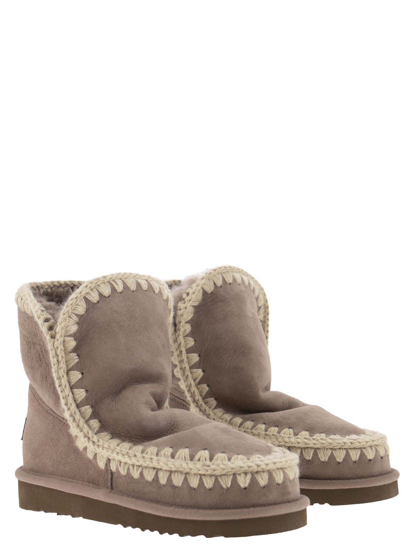 MOU's iconic Eskimo 18 boot is crafted by expert artisans from beautiful, warm double-face sheepskin, with crocheted wool seams, a reinforced heel and a durable rubber and EVA outsole. Incredibly comfortable and durable. - Height 18 cm - Regular fit DESIGNER ID: MU.FW101001A ELGRY