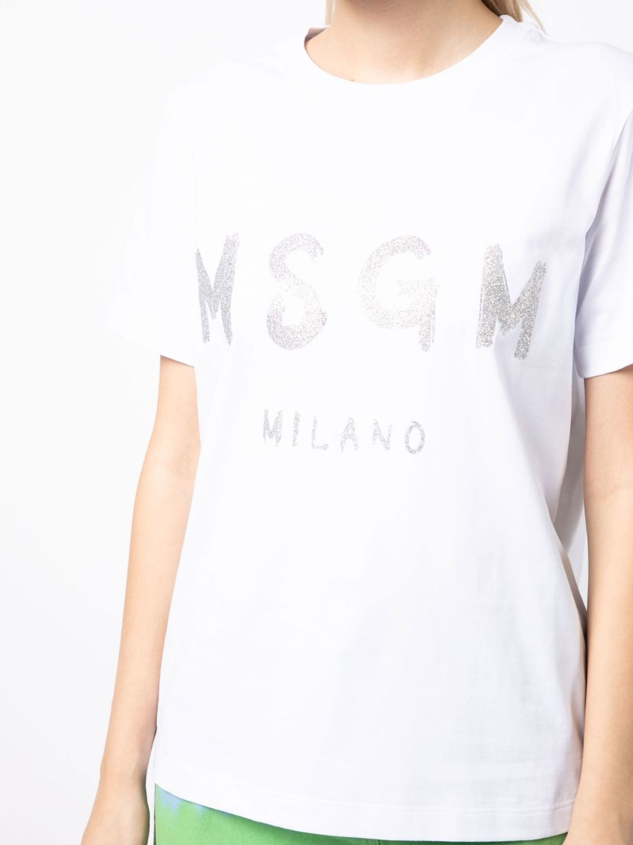 Msgm Jersey T Shirt With Glitter Brushstroke Logo