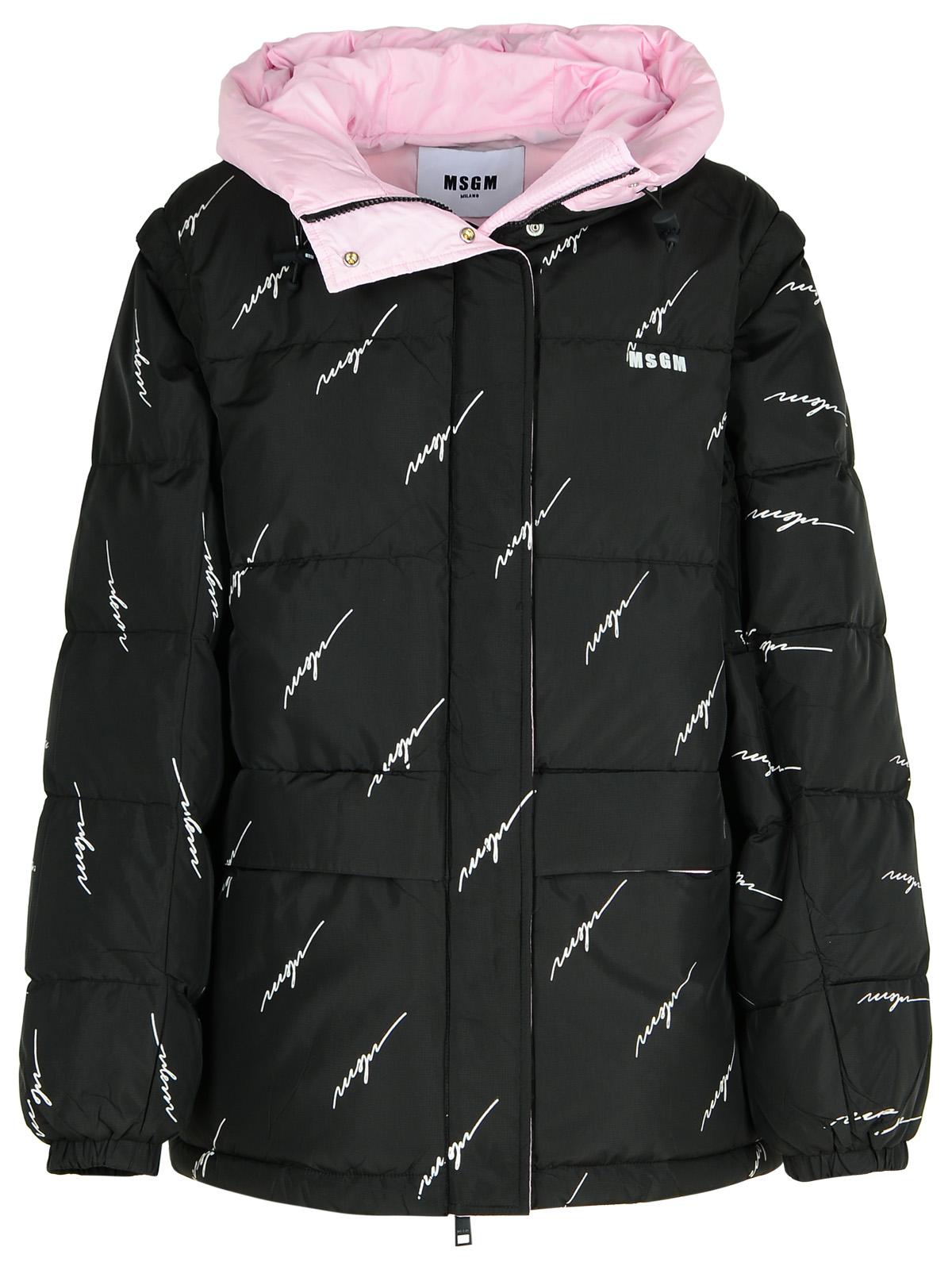 Drawstring hood, pink trimming, pink lining, zip and button closure, contrast serial logo signature, drawstring at the hem, two side pockets, removable zip sleeves