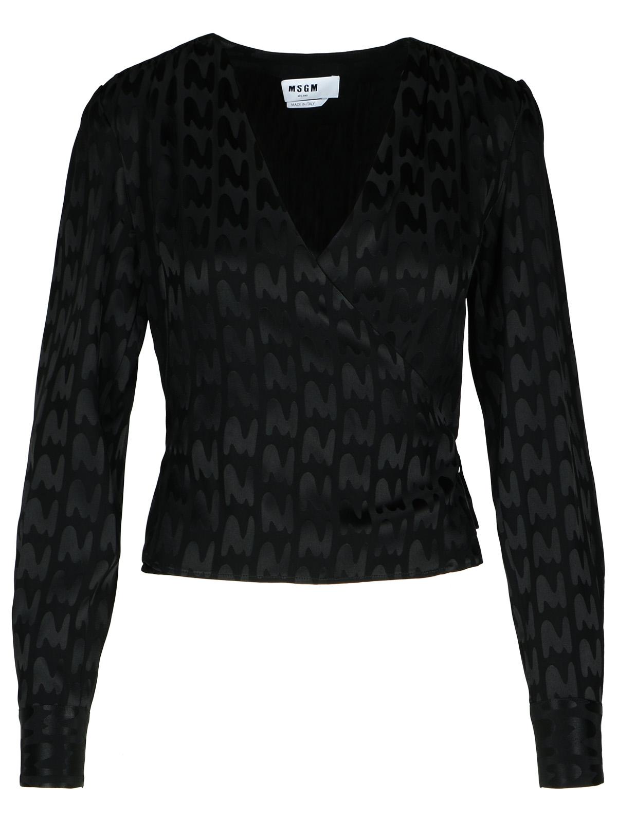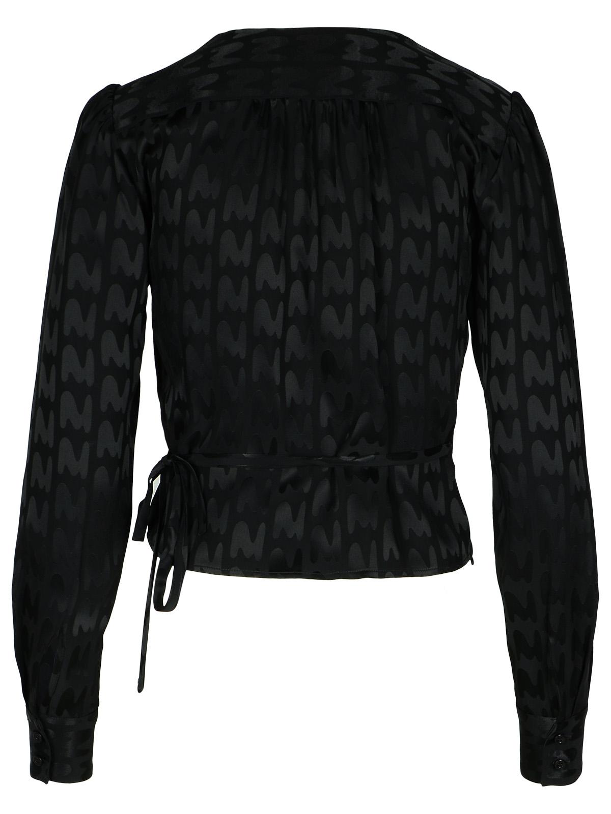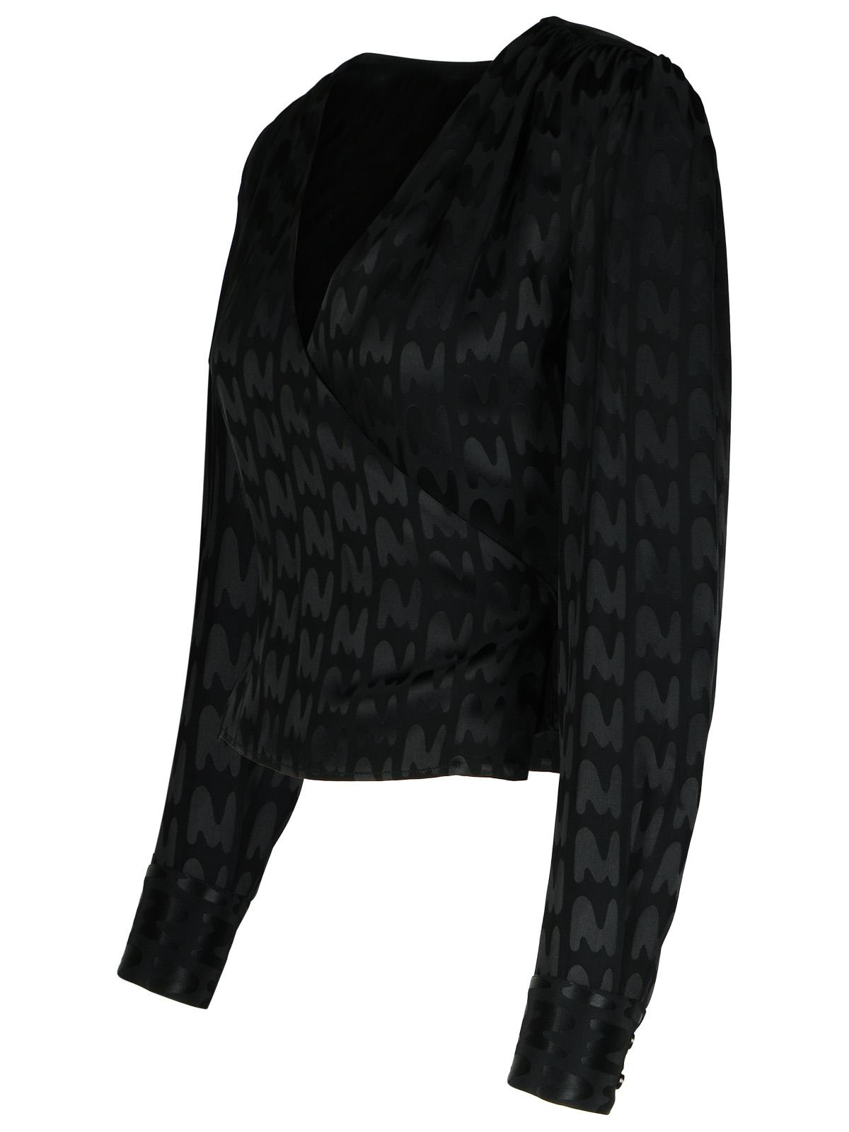 Made of viscose and acetate blend, all-over tonal 'M' monogram, V-neck, tie wrap closure, button cuffs.