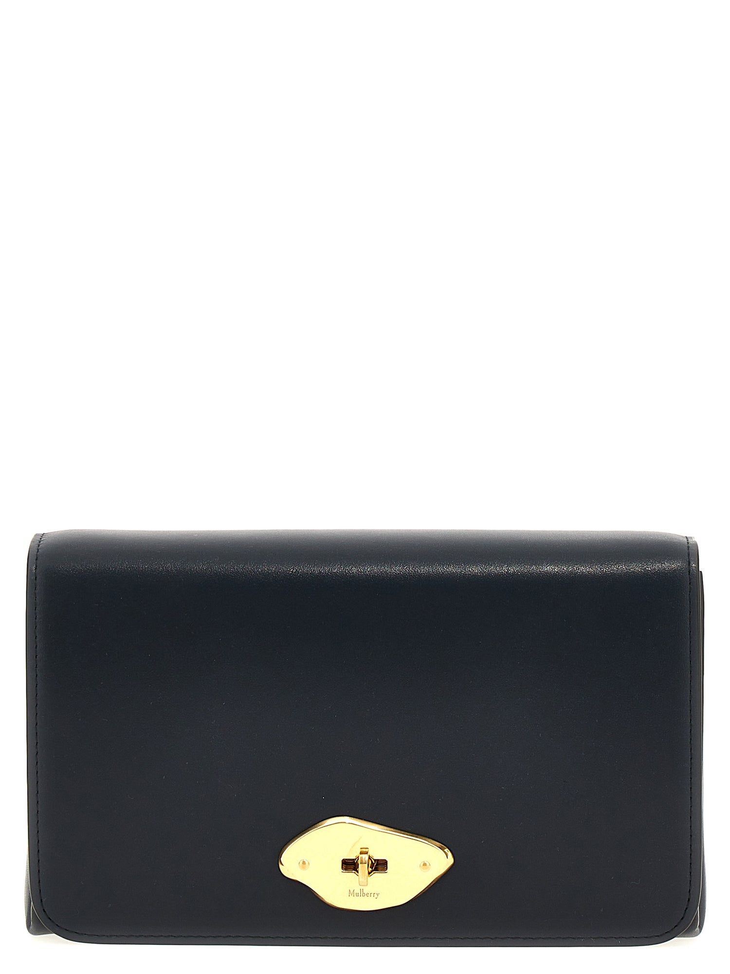 'Lana' smooth leather wallet on chain, flap closure with metal Foundry Lock, adjustable and removable shoulder strap, pocket.
