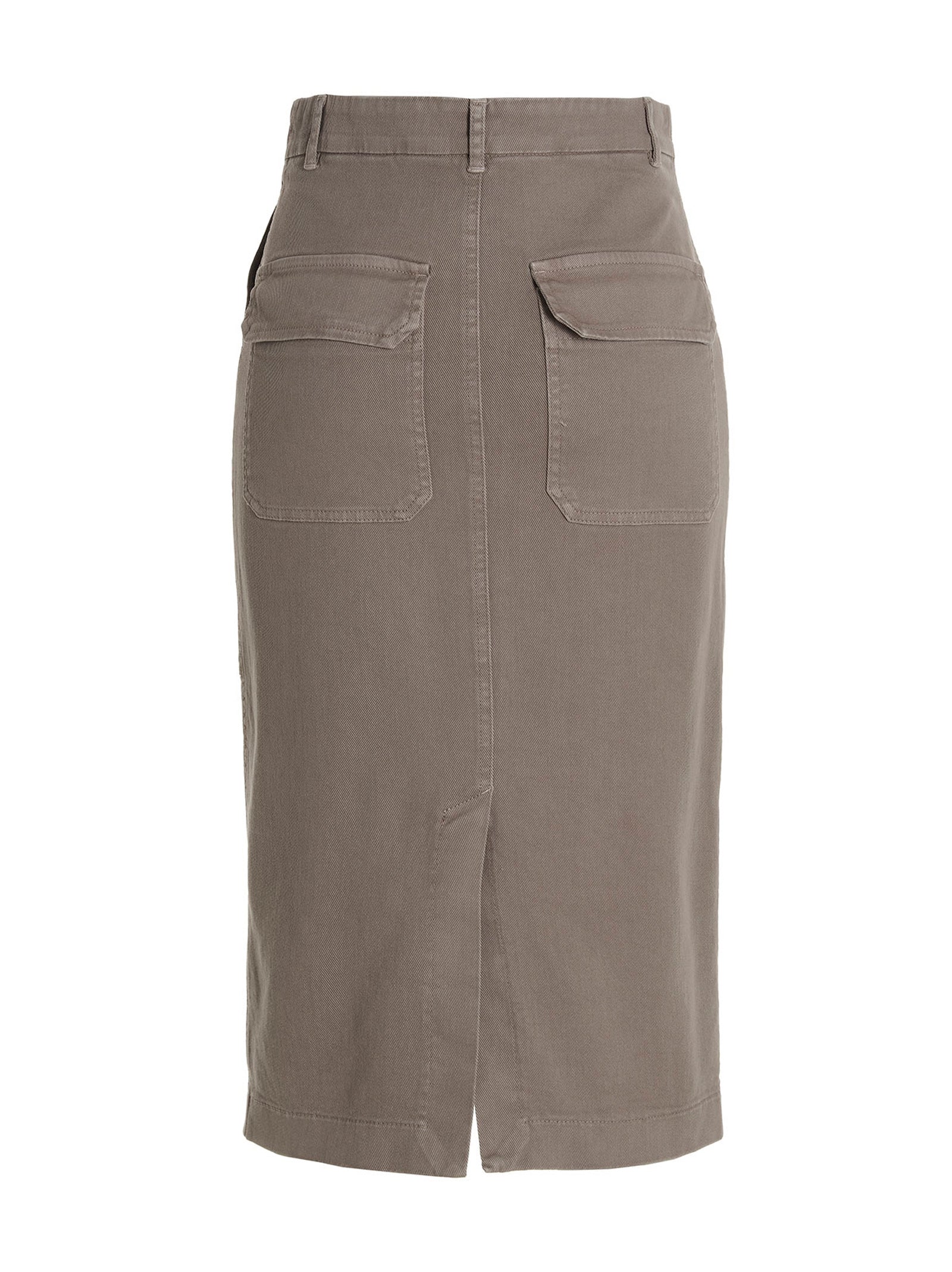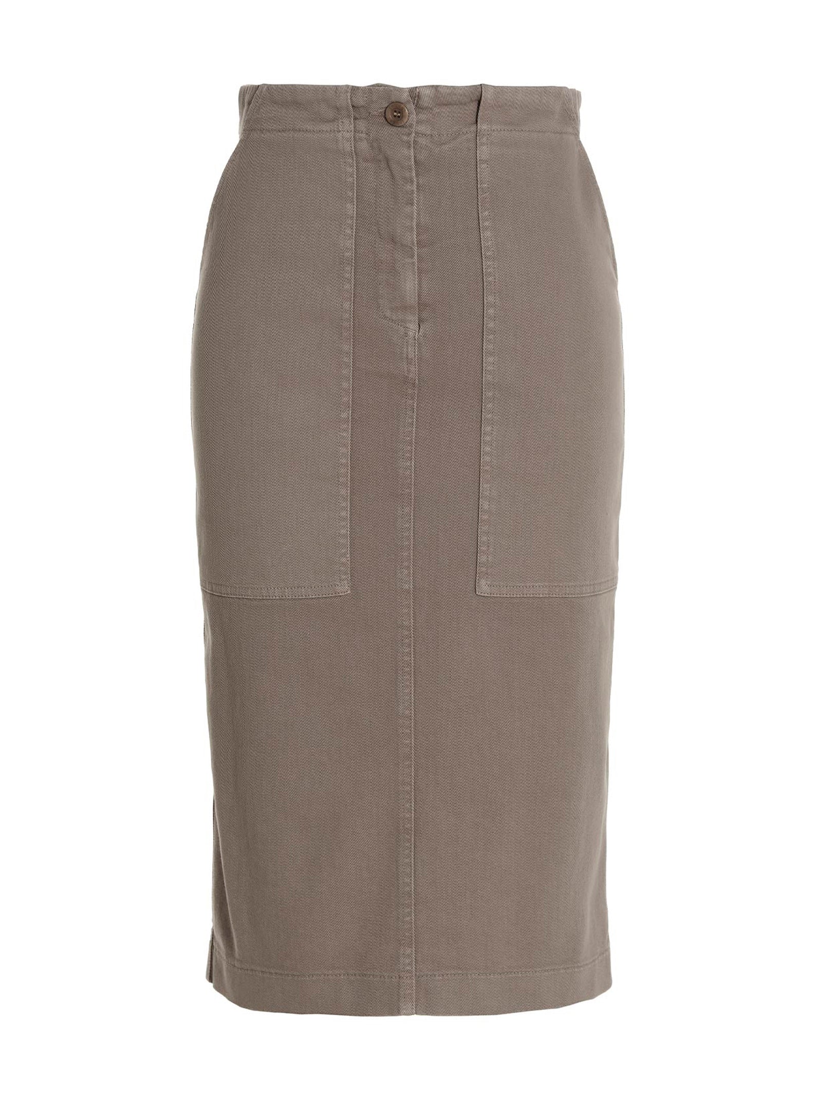 Denim midi skirt with maxi front pockets.