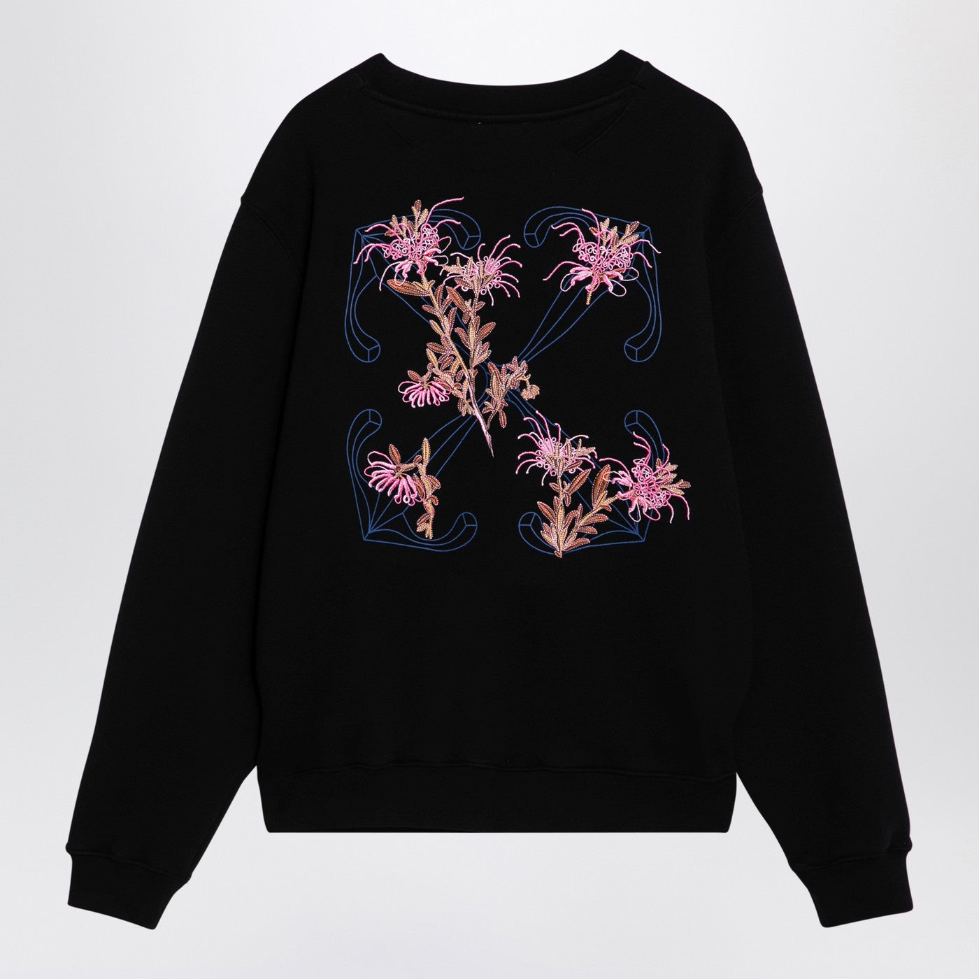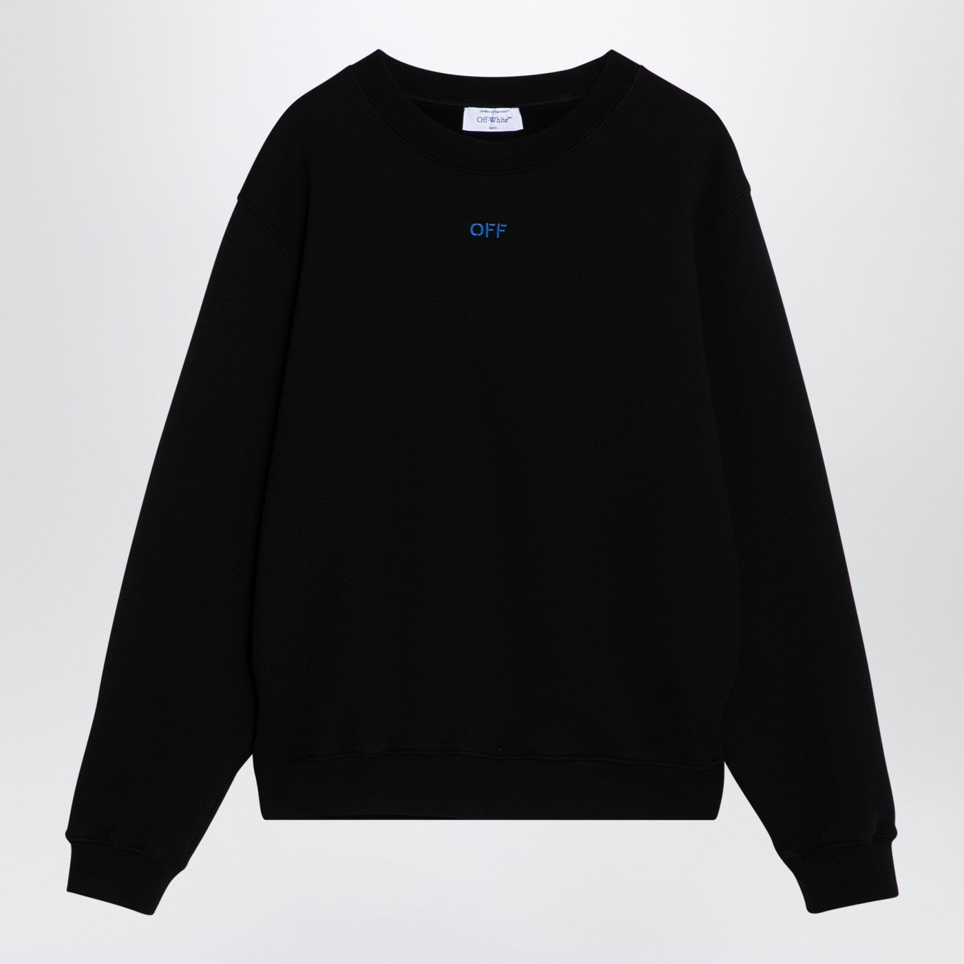 Black cotton crewneck sweatshirt from Off-White featuring long sleeves, front lettering logo embroidery, contrasting back logo embroidery and straight hem.
