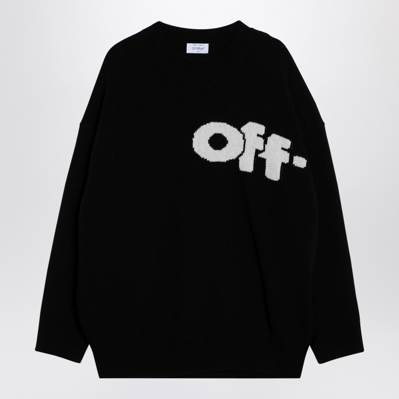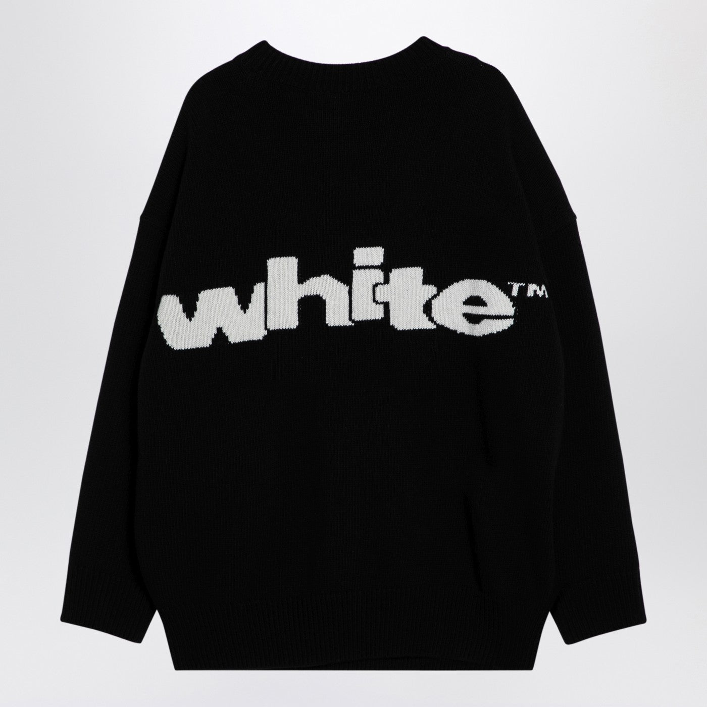 Black wool-blend crew-neck jumper from Off-White featuring contrast front and back lettering logo, long sleeves and ribbed hems.