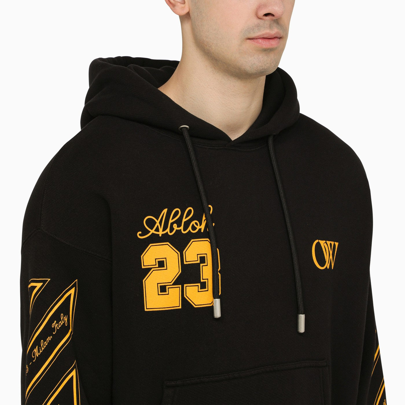 Sweatshirt hoodie by Off-White in black cotton, featuring yellow 23 print on the chest, Diag-print on the sleeves, drawstring hood, front kangaroo pocket, ribbed cuffs and hem and skate fit.