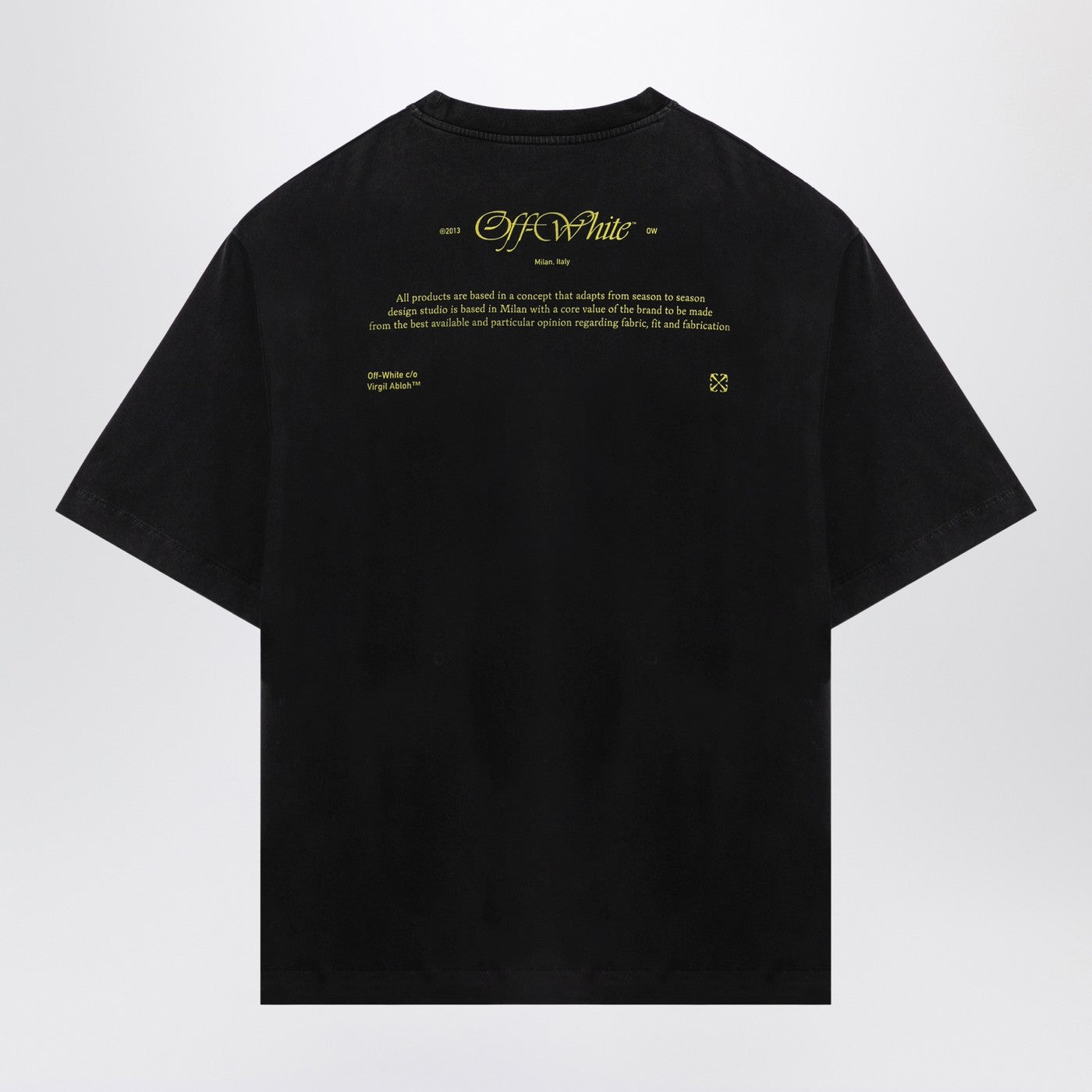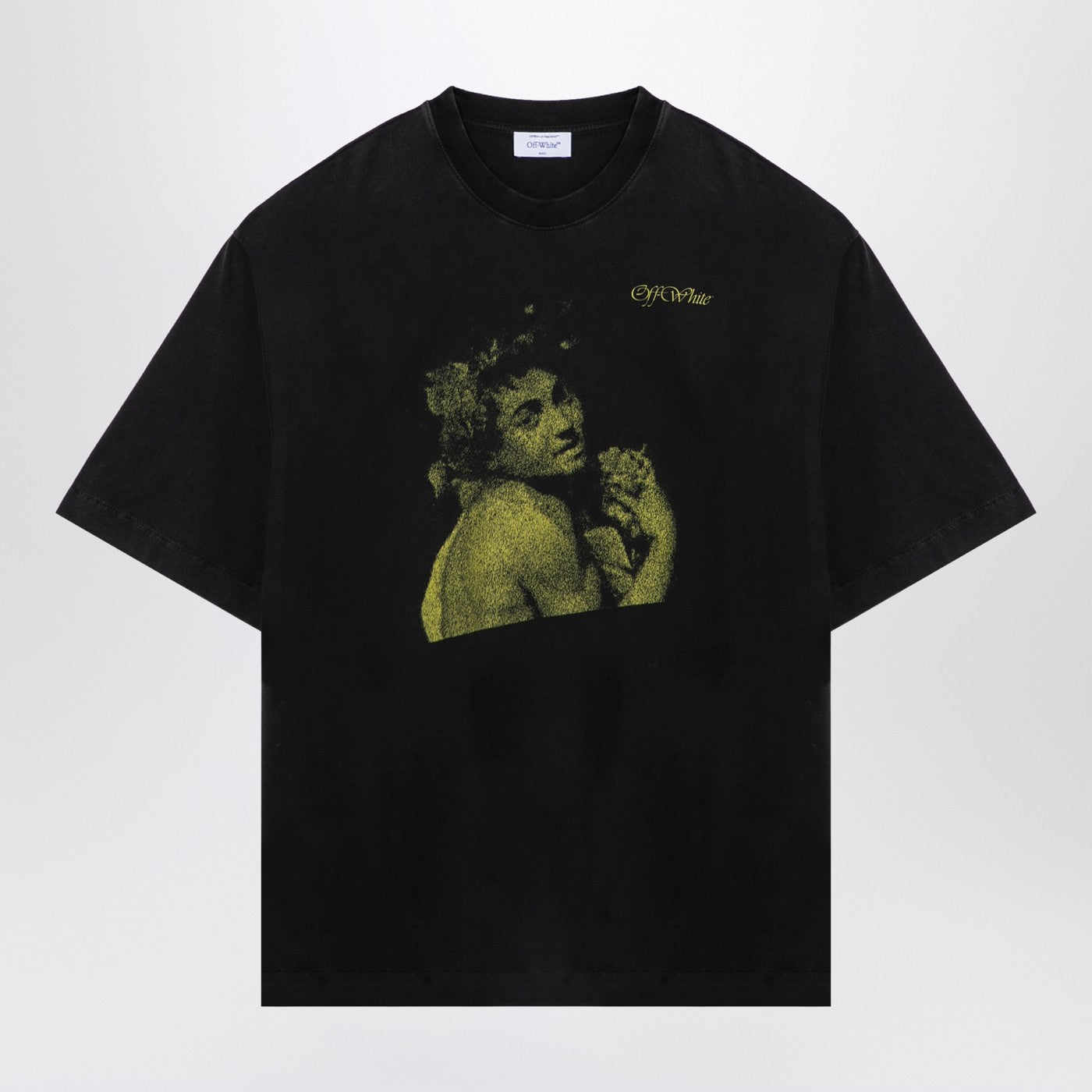 Black cotton oversized crew-neck T-shirt from Off-White featuring short sleeves, logo print on chest and back print.