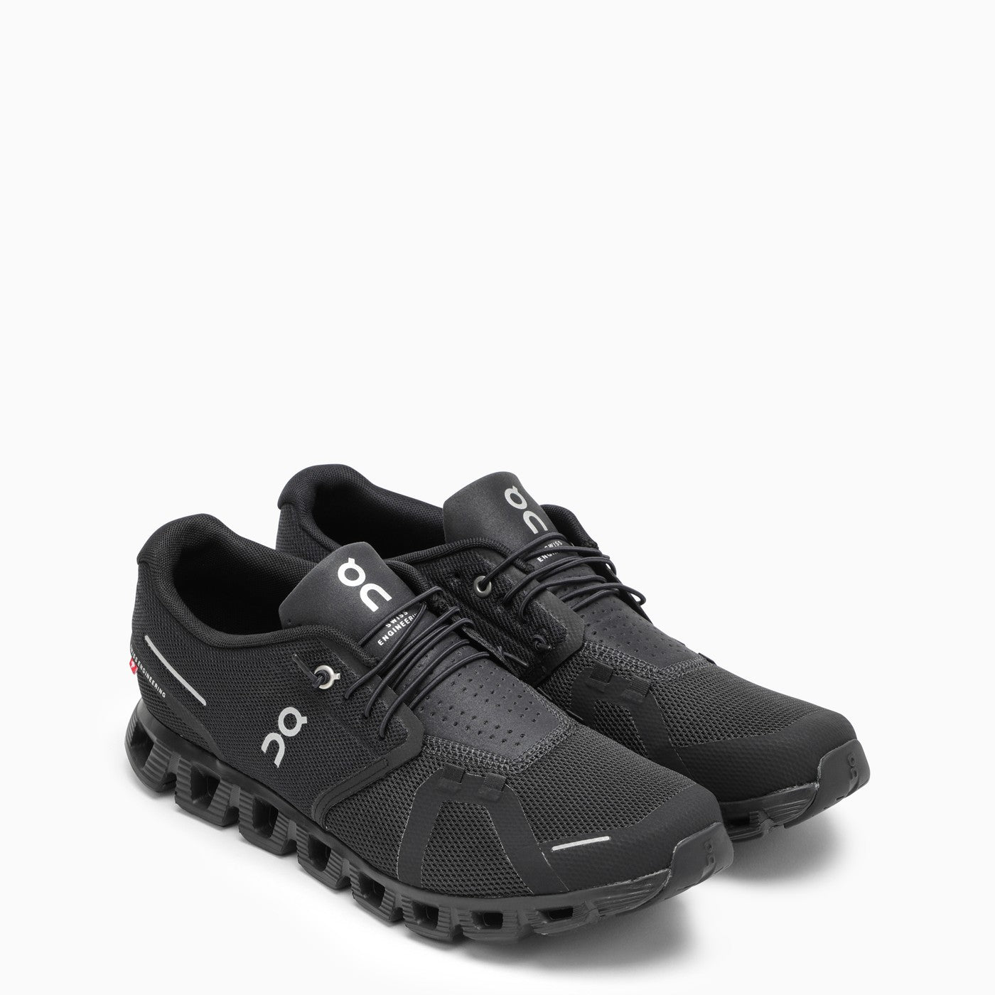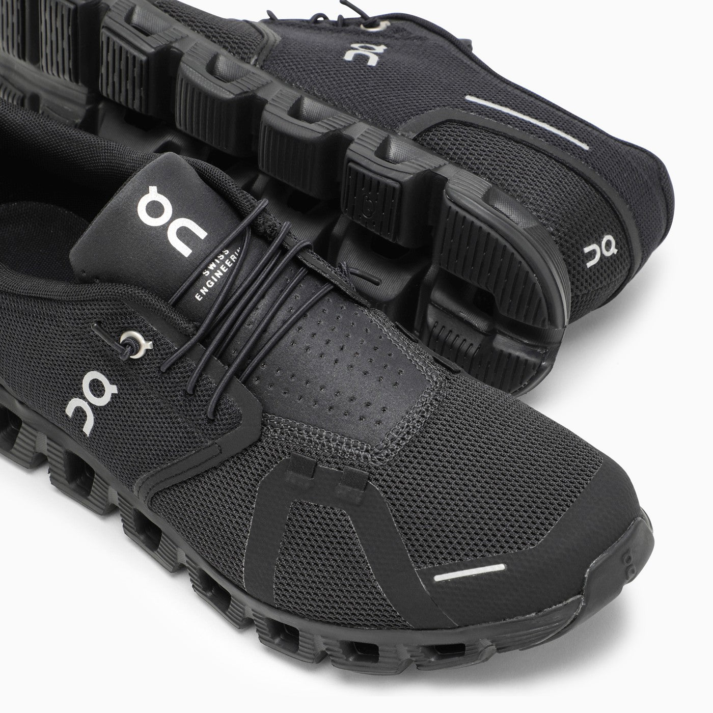 Black fabric low top trainer by On features a round toe, lace-up fastening, padded tongue and ankle strap, embroidered logo on side and tongue and iconic perforated rubber sole.