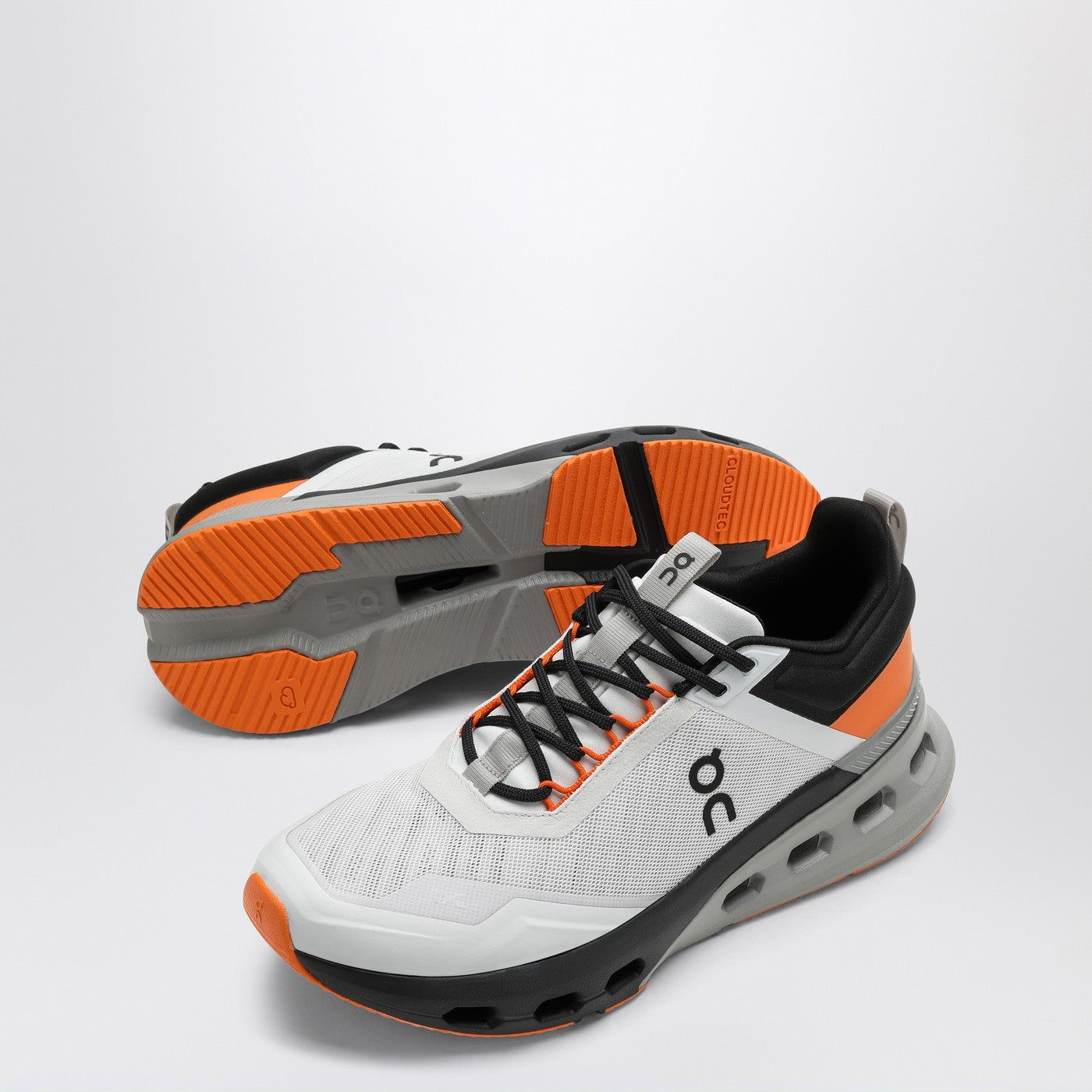 Ice coloured, orange and black textile low sneaker by On featuring a round toe, lace-up fastening, embroidered logo on side and tongue, logoed rear puller and iconic CloudTec perforated rubber sole.