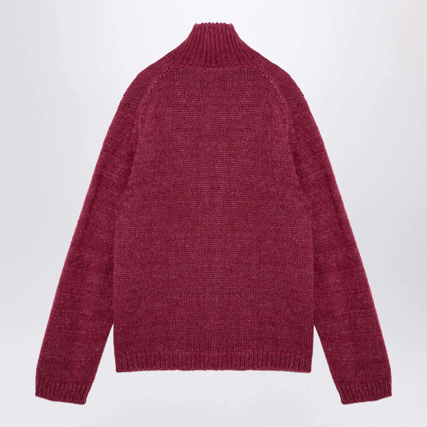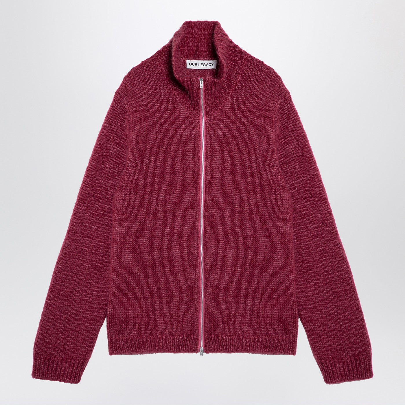 Cardigan by Our Legacy in ruby-coloured mohair and silk, featuring a double-zip front fastening, long sleeves and ribbed hems.