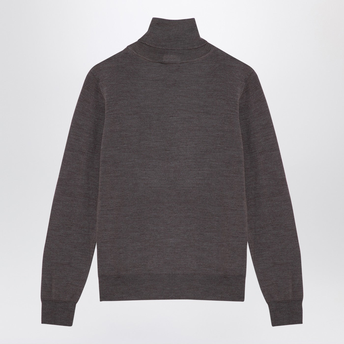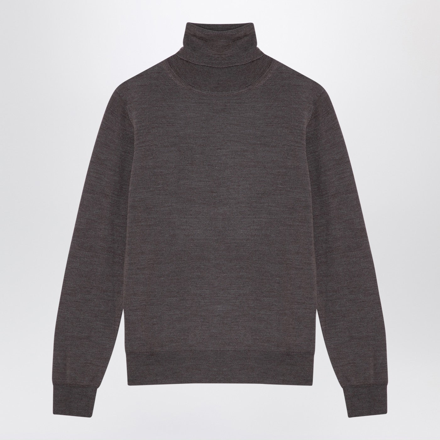 Brown wool-silk-cashmere blend sweater from P.A.R.O.S.H. featuring long sleeves, a high collar and ribbed edges.