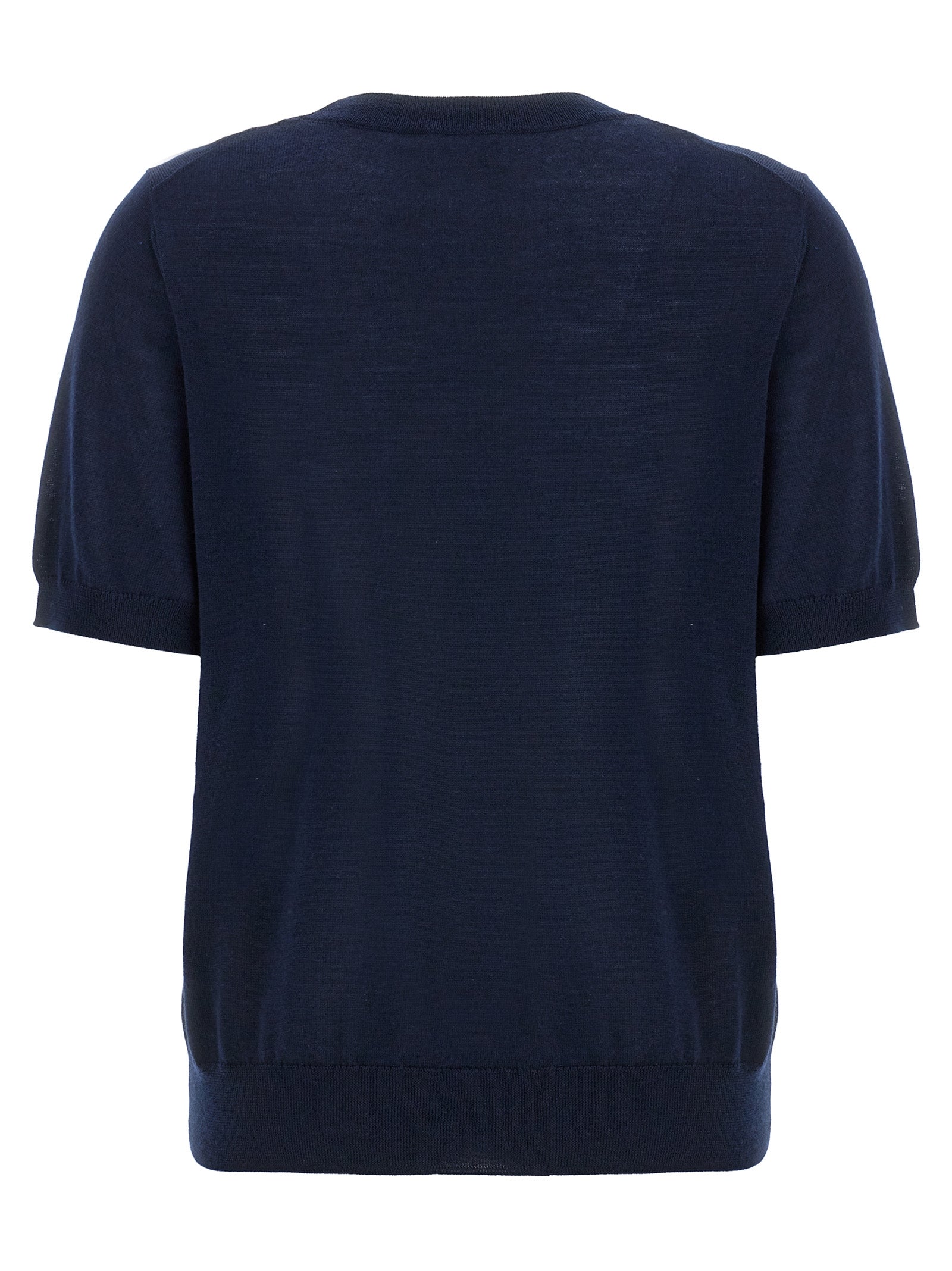 Crew-neck sweater in wool blend, short sleeves.
