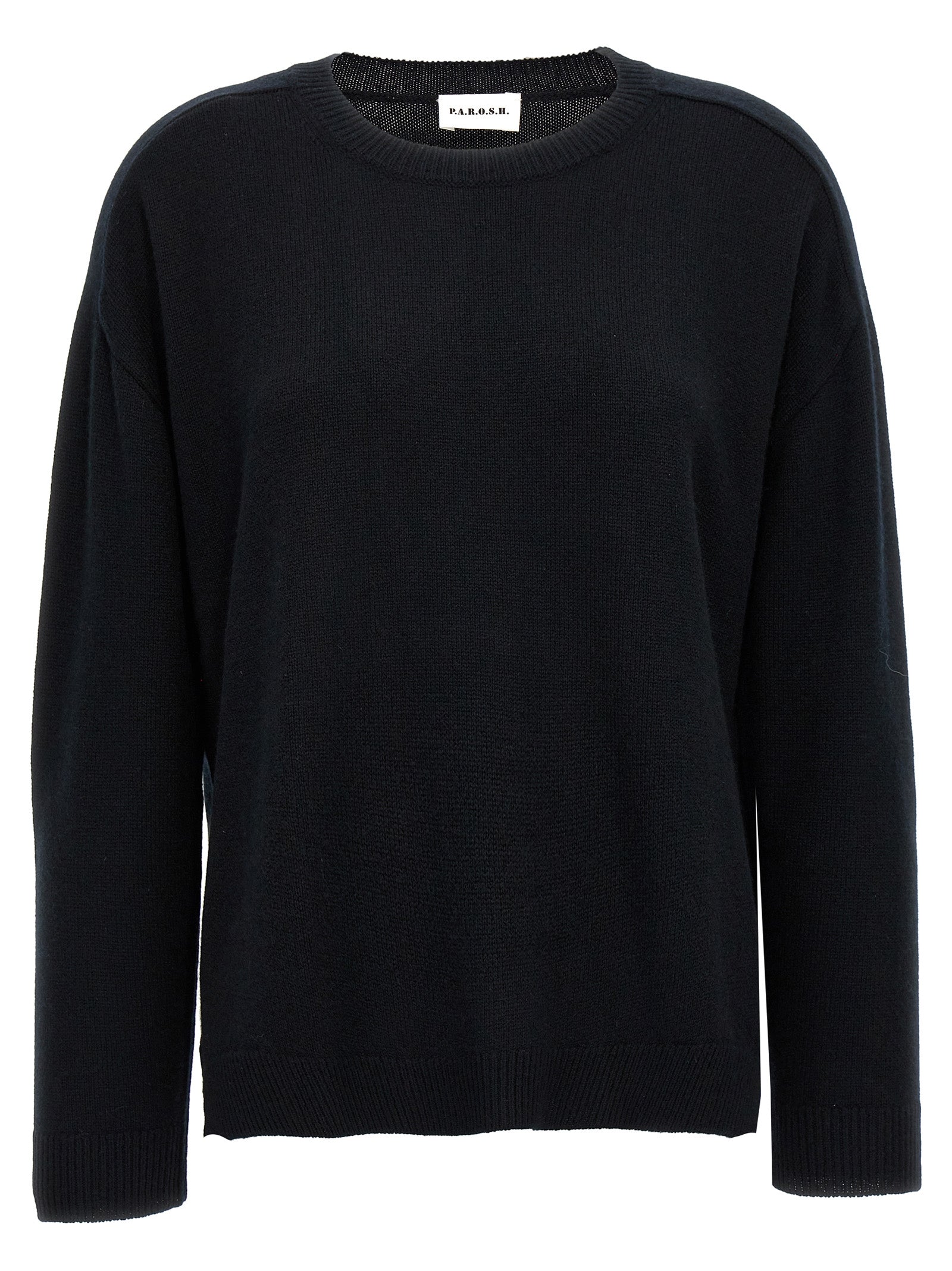 Cashmere blend crewneck sweater with long sleeves and side splits.