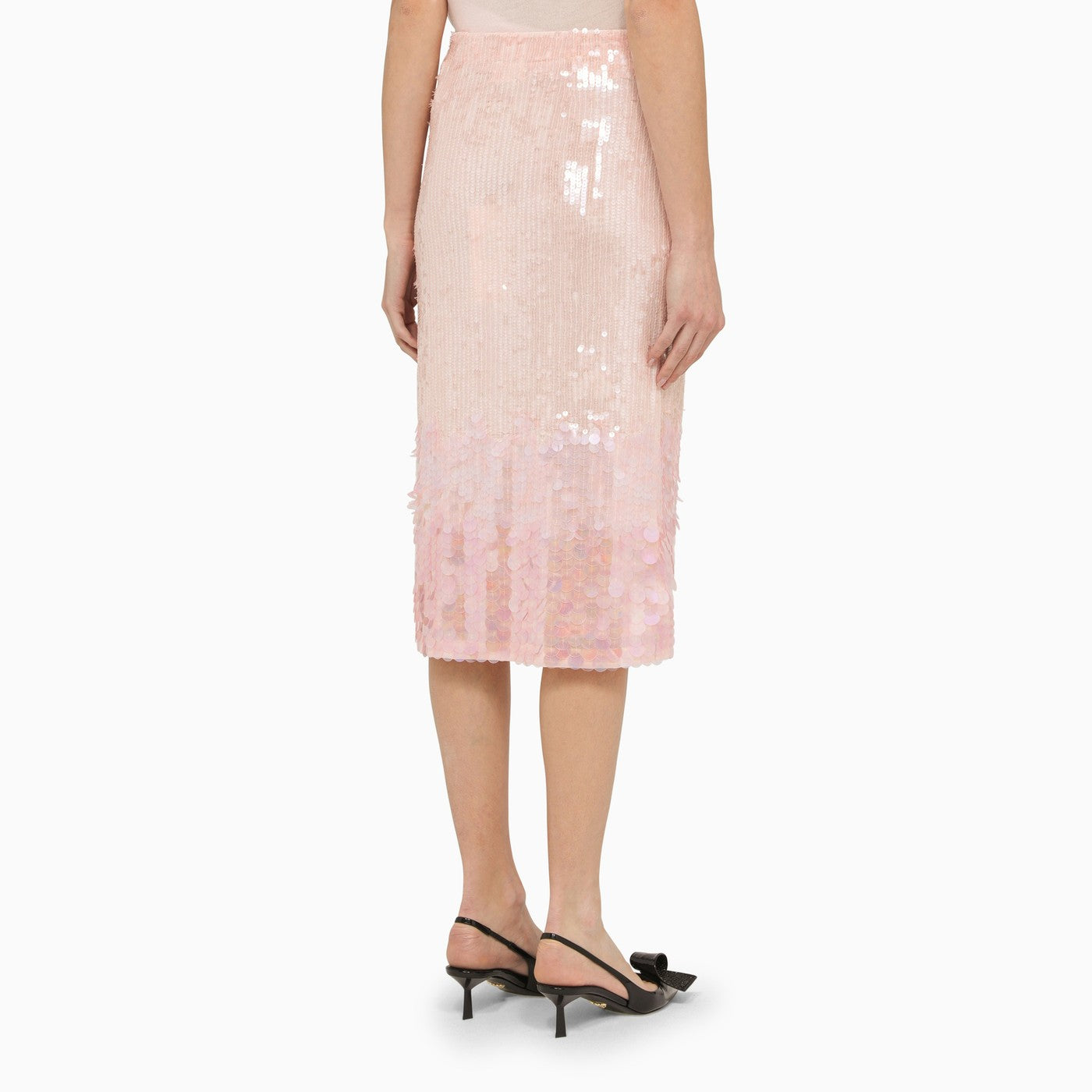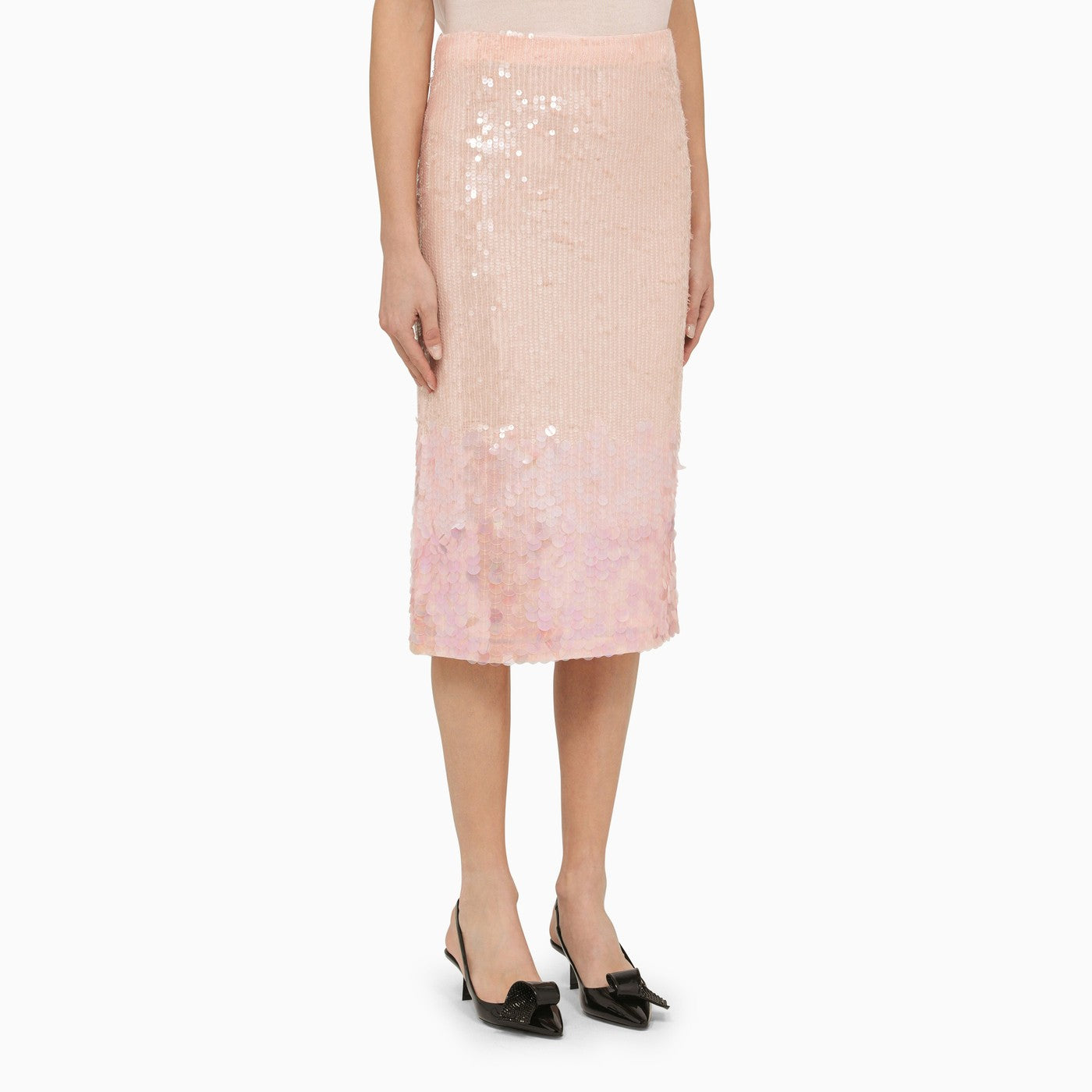Pink sequin pencil skirt from P.A.R.O.S.H. featuring a high waist and a close fit.