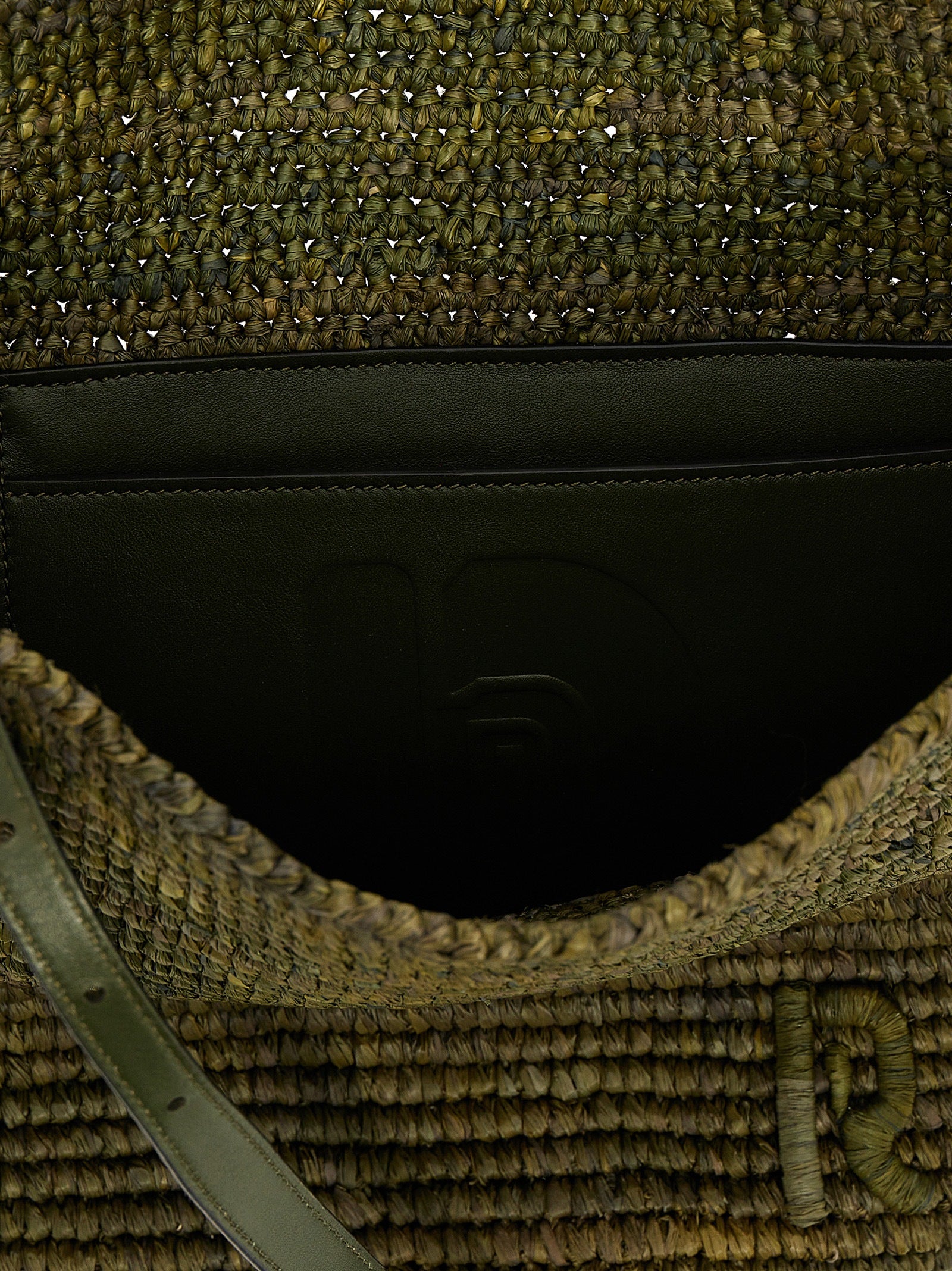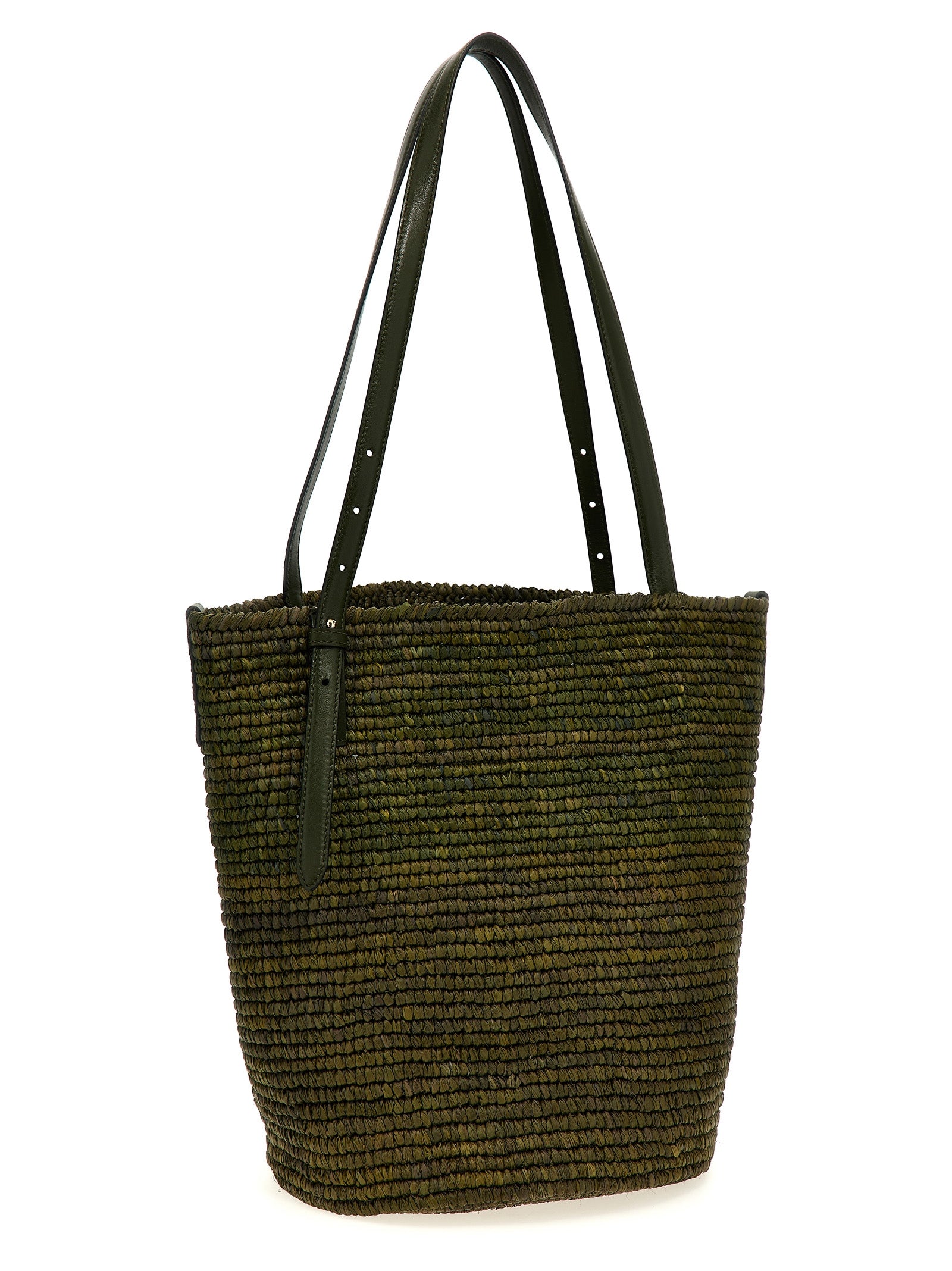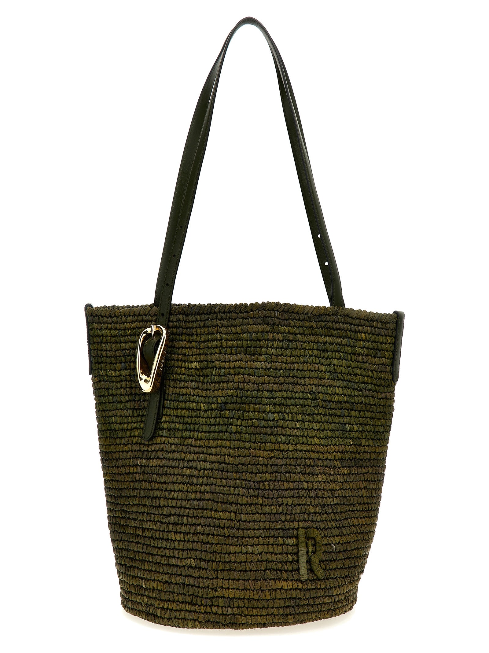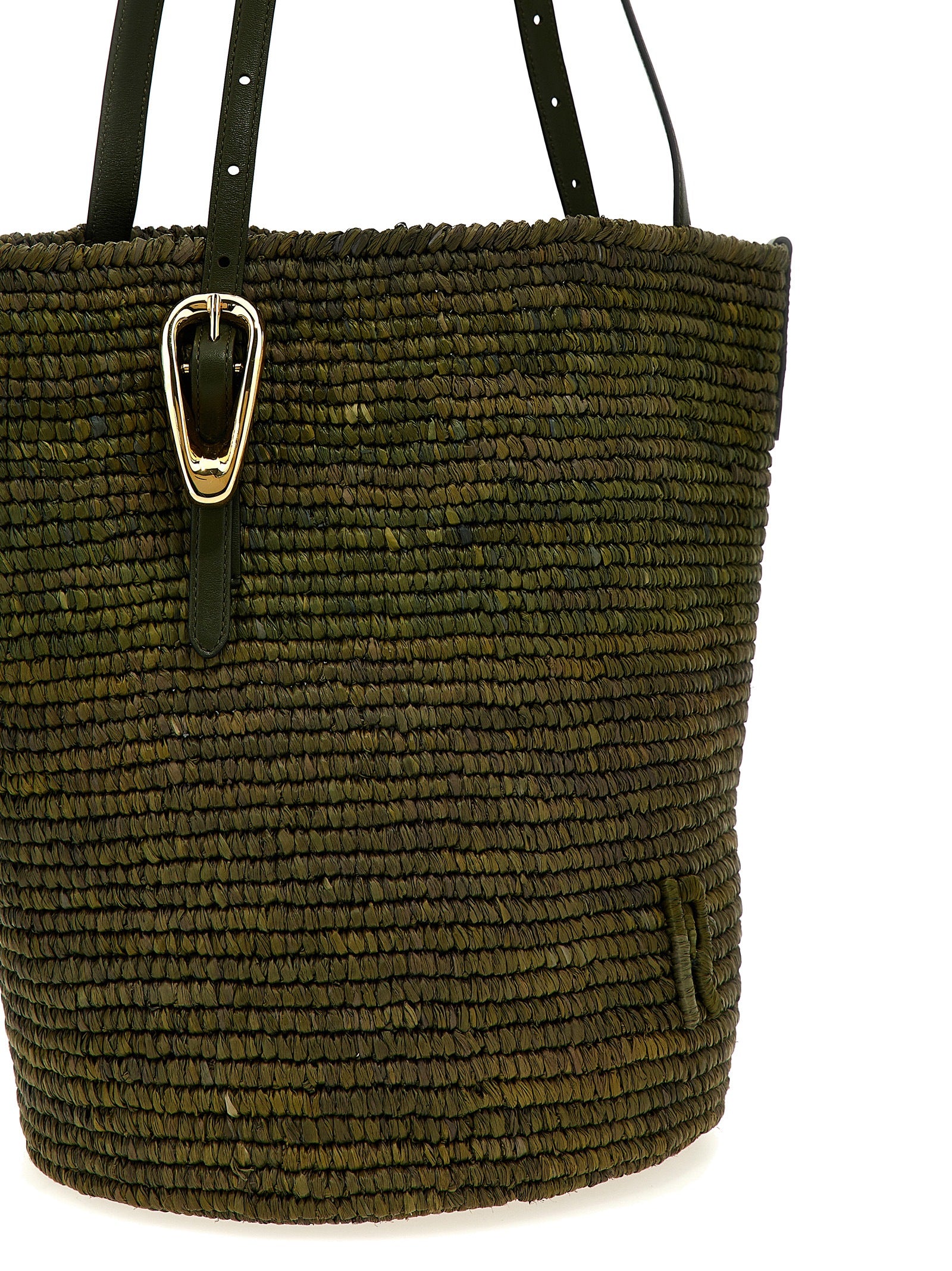 Cabas' raffia shopping bag with embossed tone-on-tone logo on the front, double adjustable leather handle with maxi gold metal buckle.