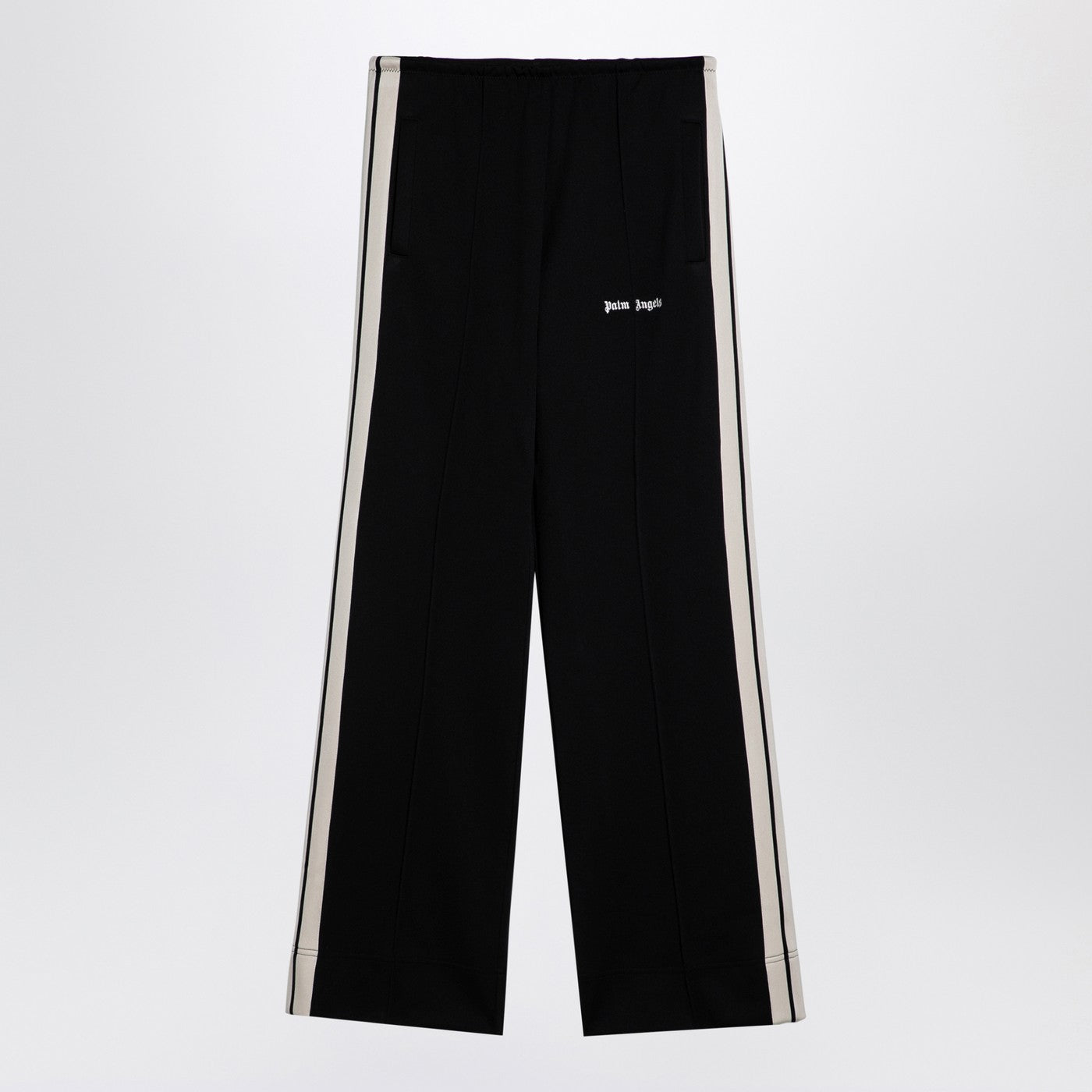 Jogging pants by Palm Angels in black jersey featuring an elasticated waistband, side welt pockets, front logo print and contrasting side bands.