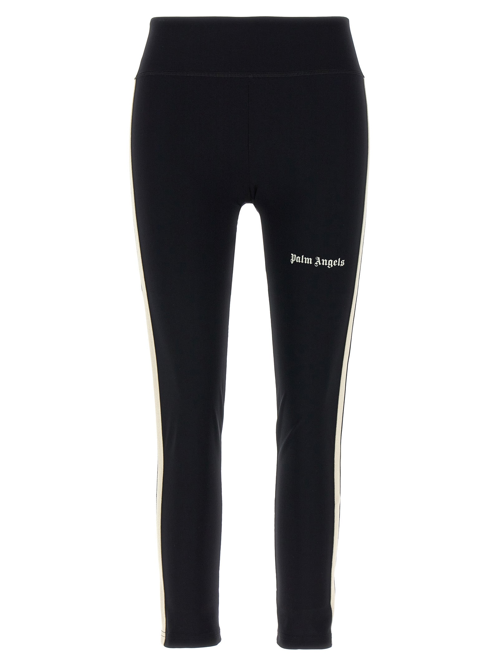 'Training Track' stretch fabric leggings with front logo print, contrast side bands, elastic waistband.
