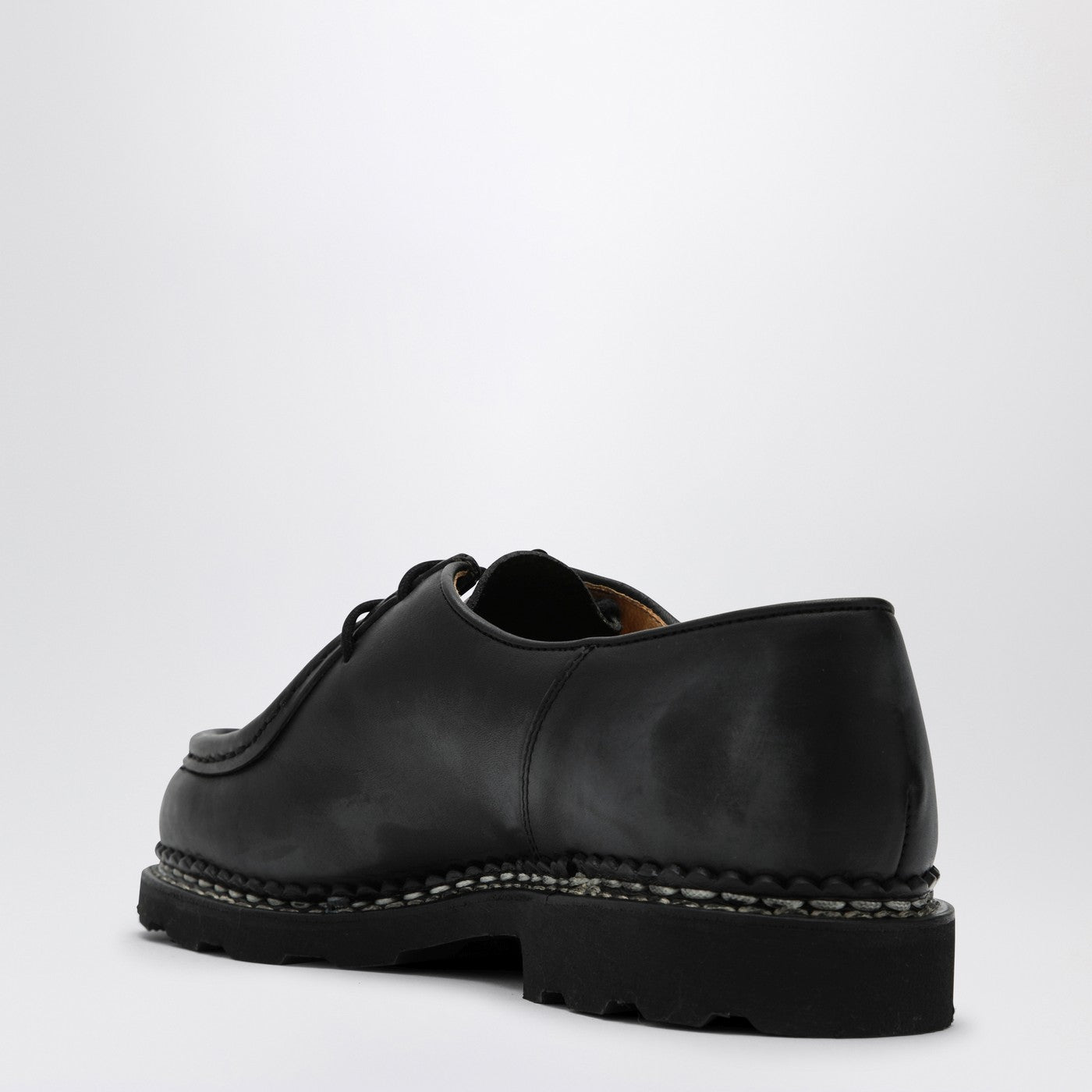 Black leather lace-up shoe by Paraboot featuring a lace-up fastening, round toe, visible stitching, logoed plaque on the front and rubber sole.