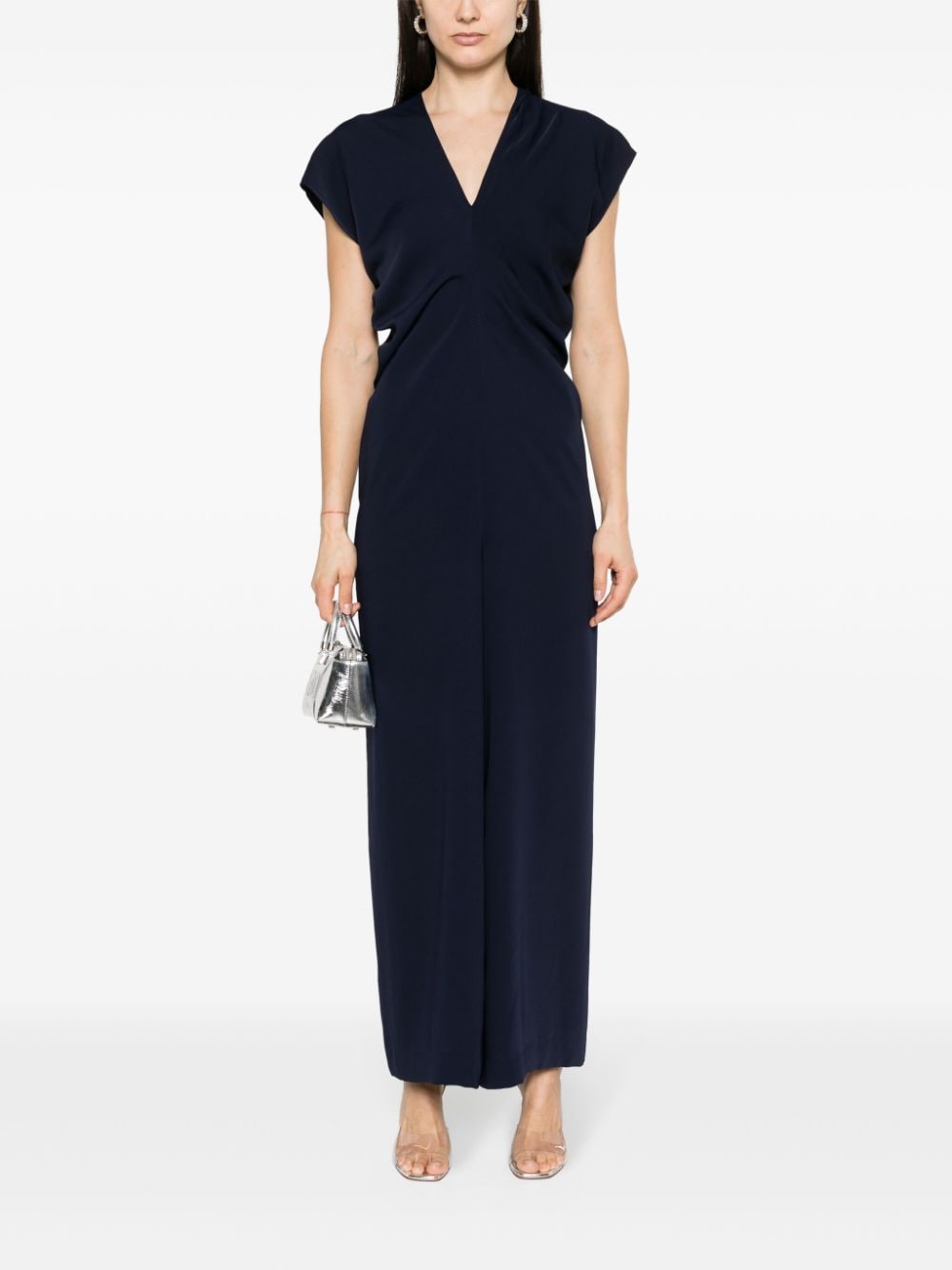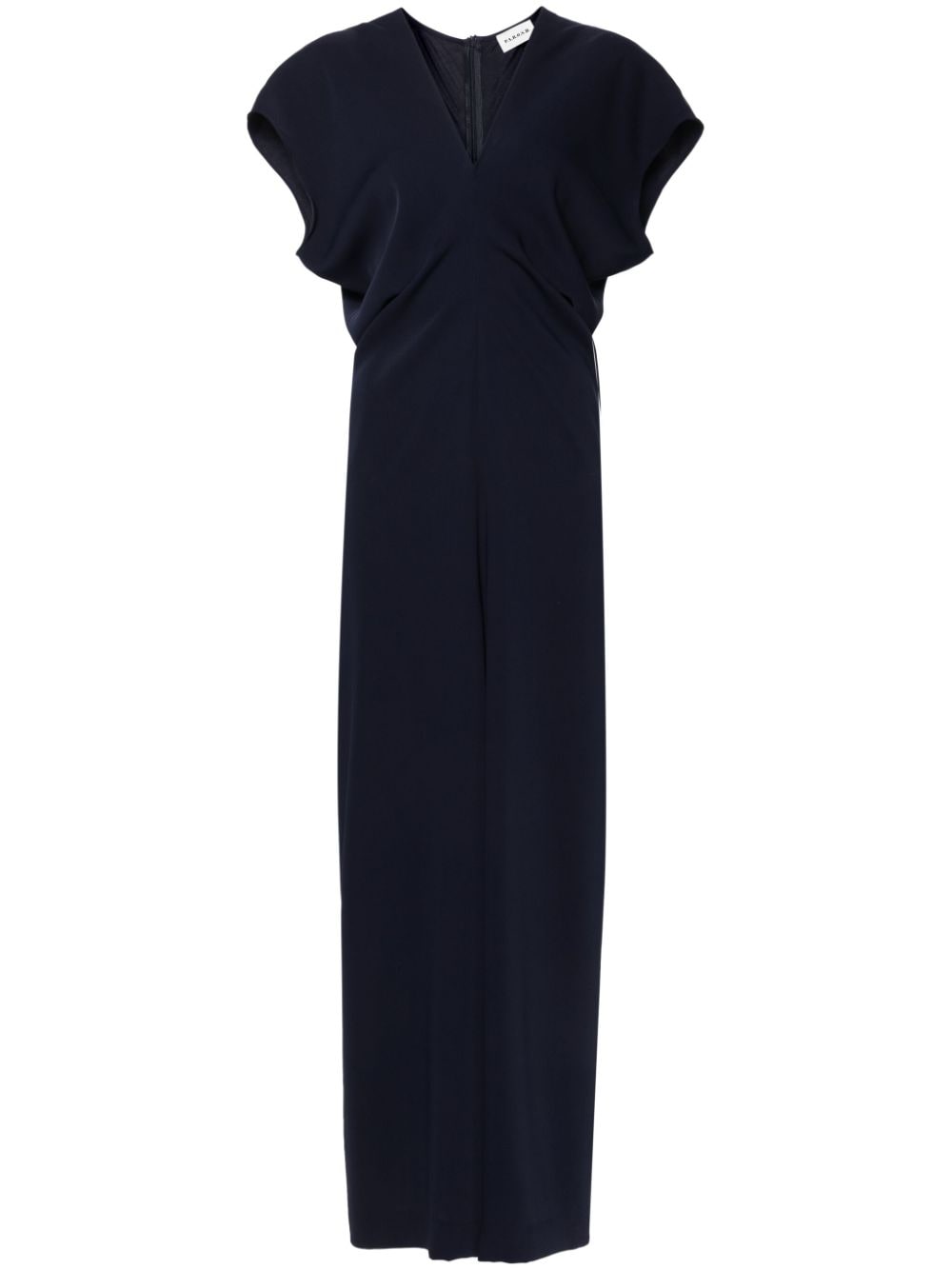 navy blue V-neck rear zip fastening sleeveless wide leg unlined