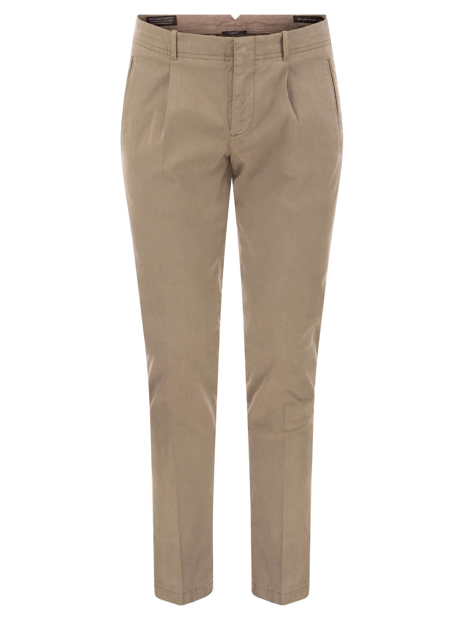Cotton gabardine and silk are the materials par excellence used to make the Peserico garment-dyed slim trousers. The quality of the fabric and the care in dyeing help to obtain a luxurious trouser suitable for everyday wear. The garment is enriched by double welt pockets and a hook and zip fastening. - Slim fit - Belt loops DESIGNER ID: R54636T0 08500 648