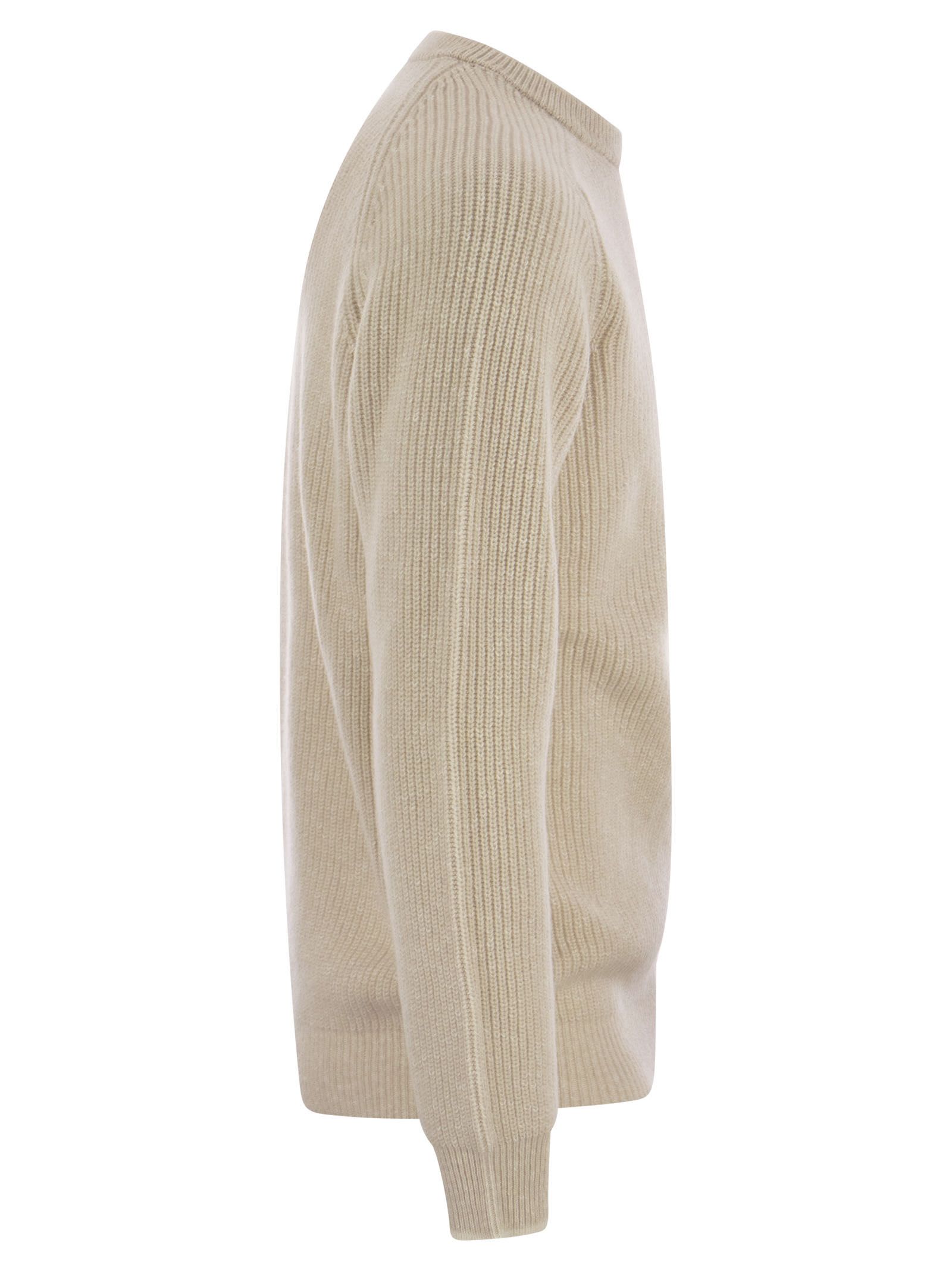 The wool-cashmere blend yarn guarantees an important insulating power without sacrificing lightness. These characteristics make the crew-neck jumper an important element of the Peserico look. The value of the garment is elevated by the English rib knitting on an integral machine. - Round-neck - English rib knitting - Long raglan sleeves - Ribbed cuffs, hem and collar finishes - Regular fit DESIGNER ID: R59280F07 9470H 40H