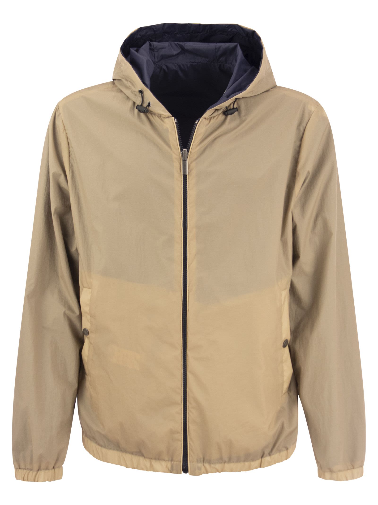 Each Peserico garment is born from the sartorial passion that has always been linked to the history of the area: the products are made entirely in Italy, conveying the style and quality that have distinguished our collections from the very beginning. - Reversible jacket with hood - Long rounded sleeves with elasticated cuffs - Zipped pockets on front - Hood with elastic band and adjusters - Elasticated hem - Regular fit - Front zip fastening DESIGNER ID: R52136 C3610 C62