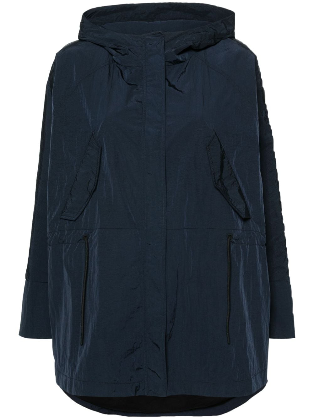 midnight blue crinkled finish lightweight construction logo patch at the sleeve classic hood concealed front zip fastening long raglan sleeves two stud-fastening chest pockets internal drawstring fastening waist curved hem mesh lining concealed press-stud fastening