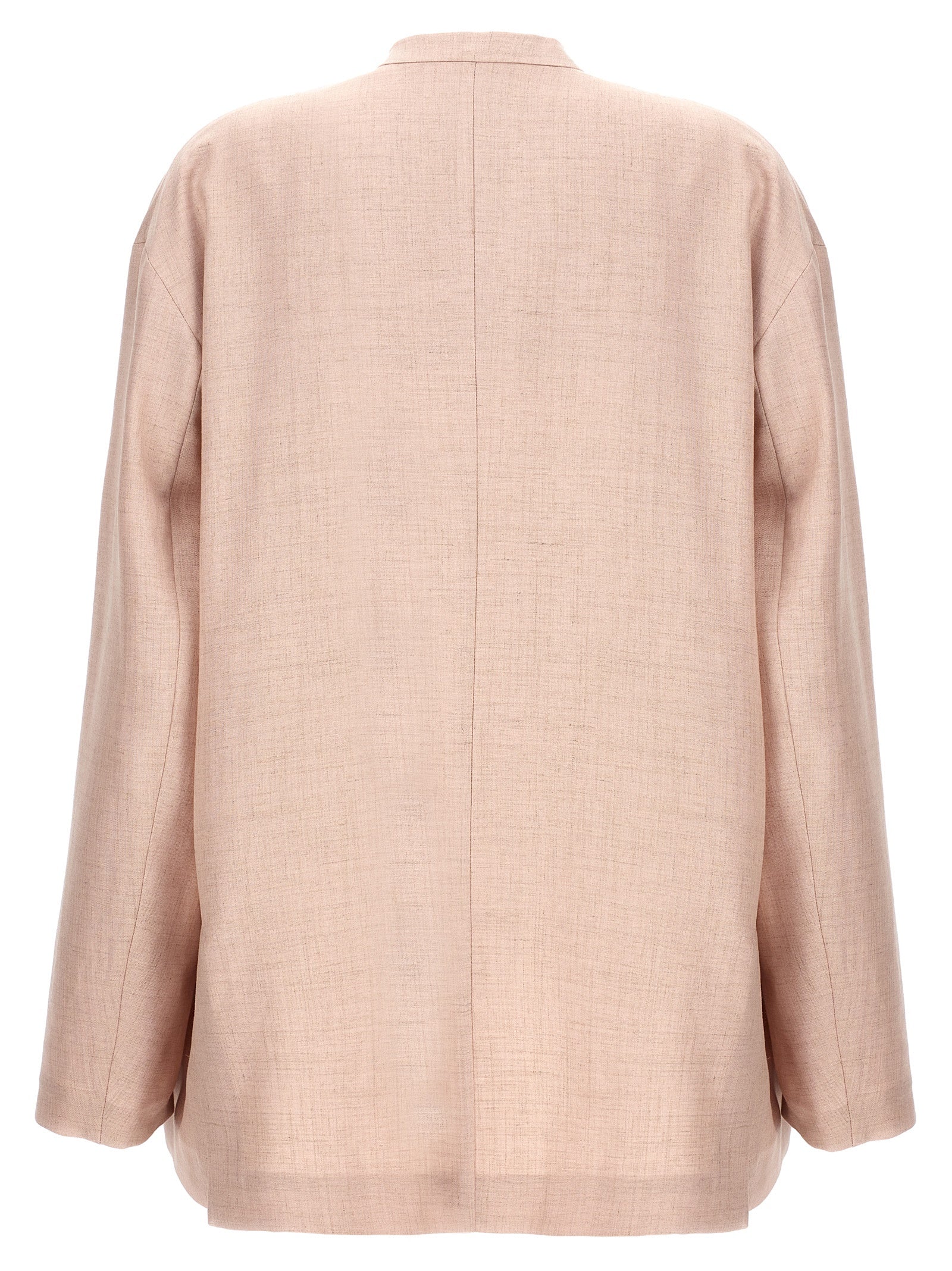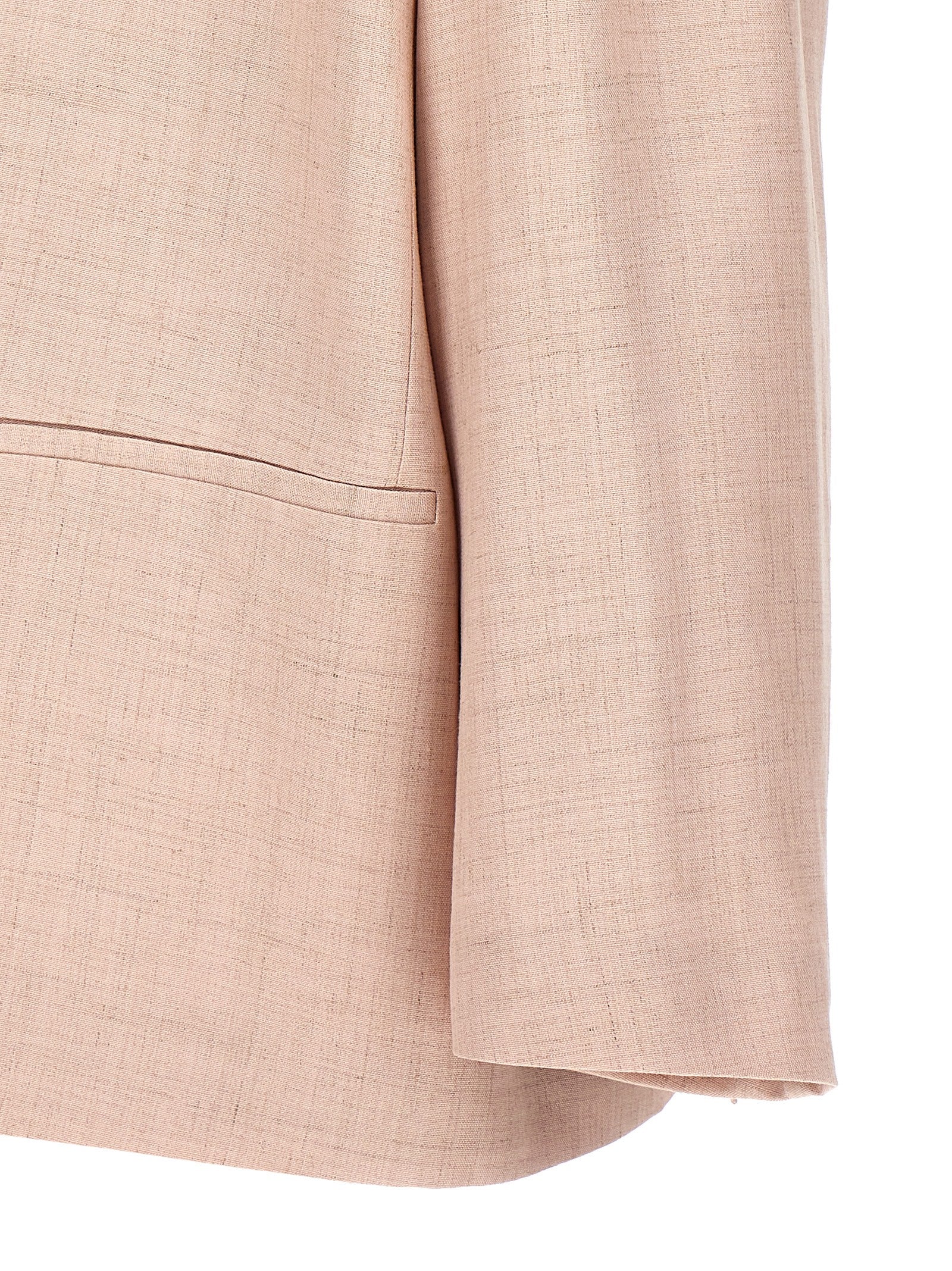 Single-breasted blazer in viscose and linen blend, button closure, long sleeves, back vents.