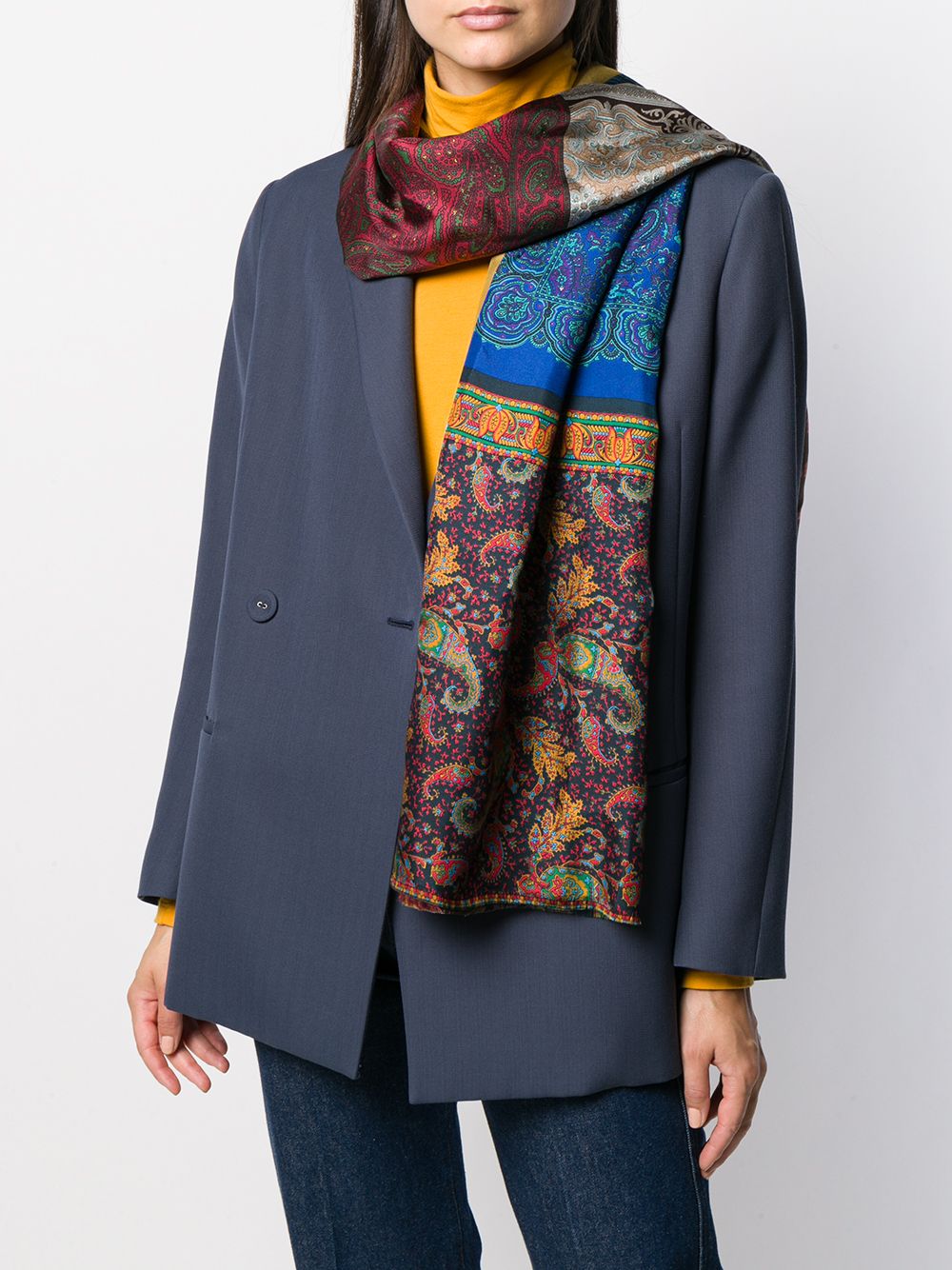 Multicolour silk Aleo scarf from Pierre-Louis Mascia featuring a patchwork print, a paisley pattern, a contrast piped trim and frayed edges.