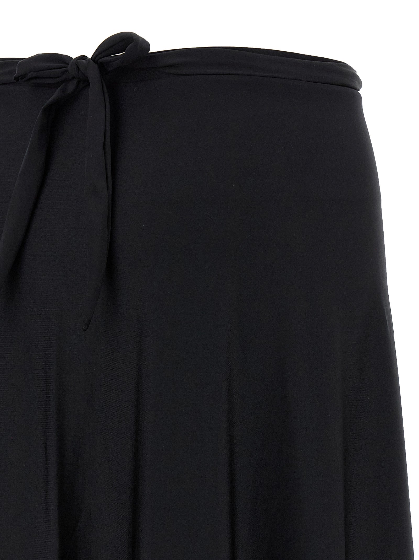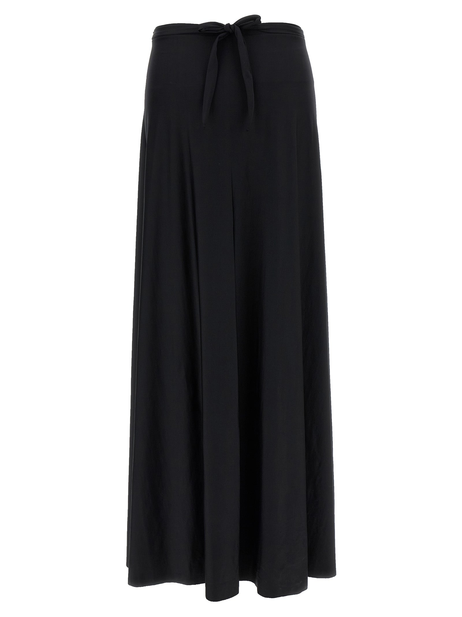 Long lycra skirt, wallet closure with tie-up strap, pareo style that can be used as a skirt with wrap closure or as a sarong dress tied at the neck.