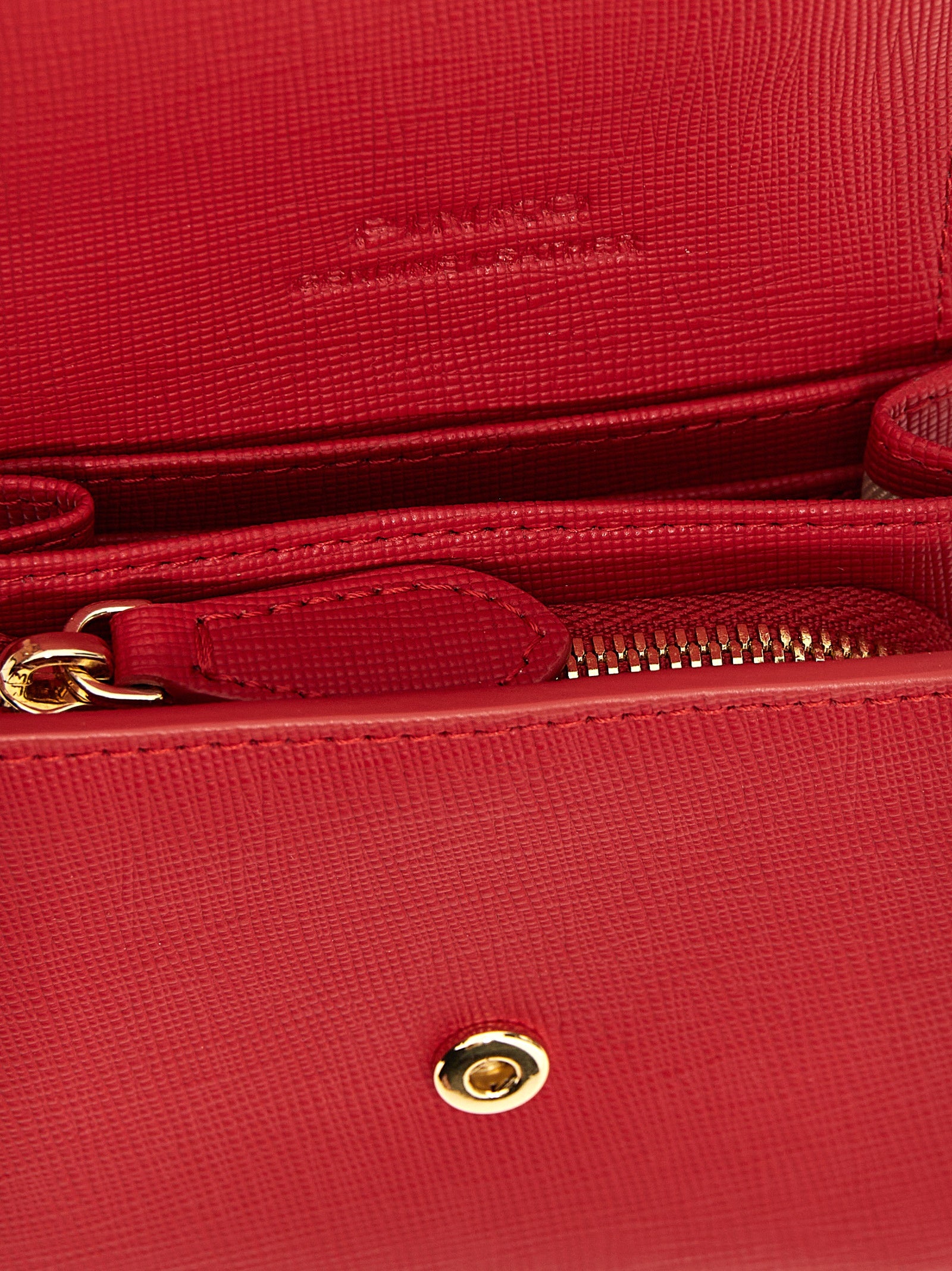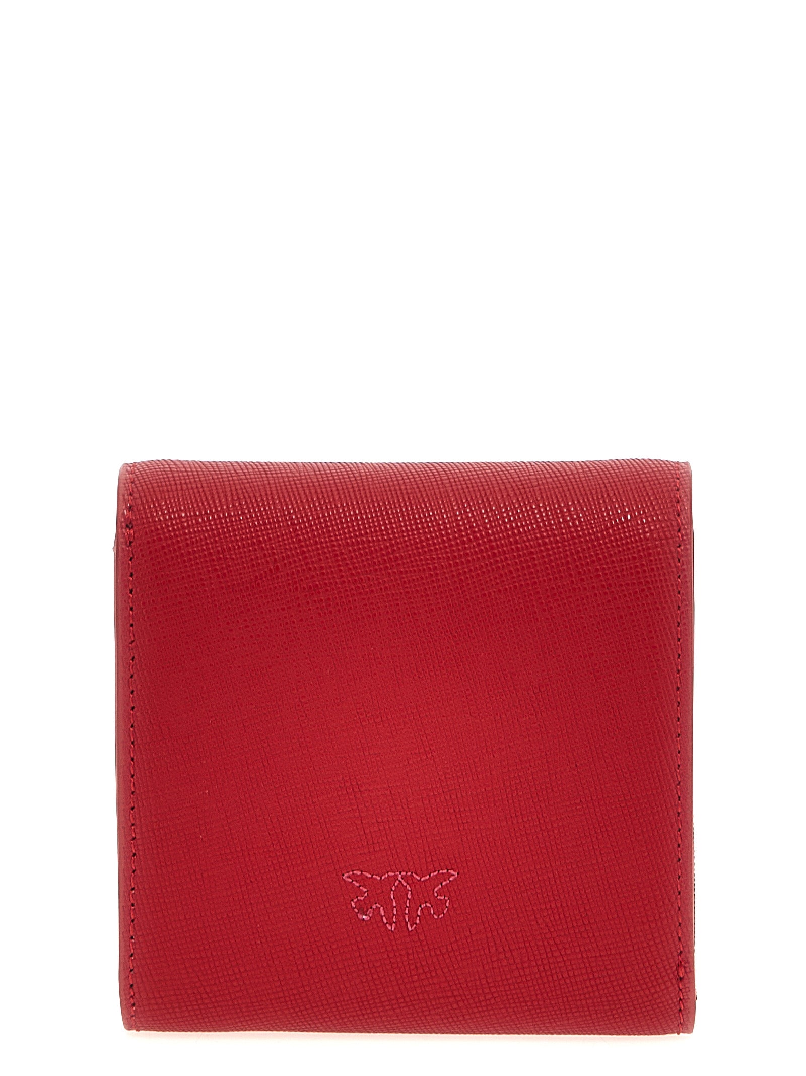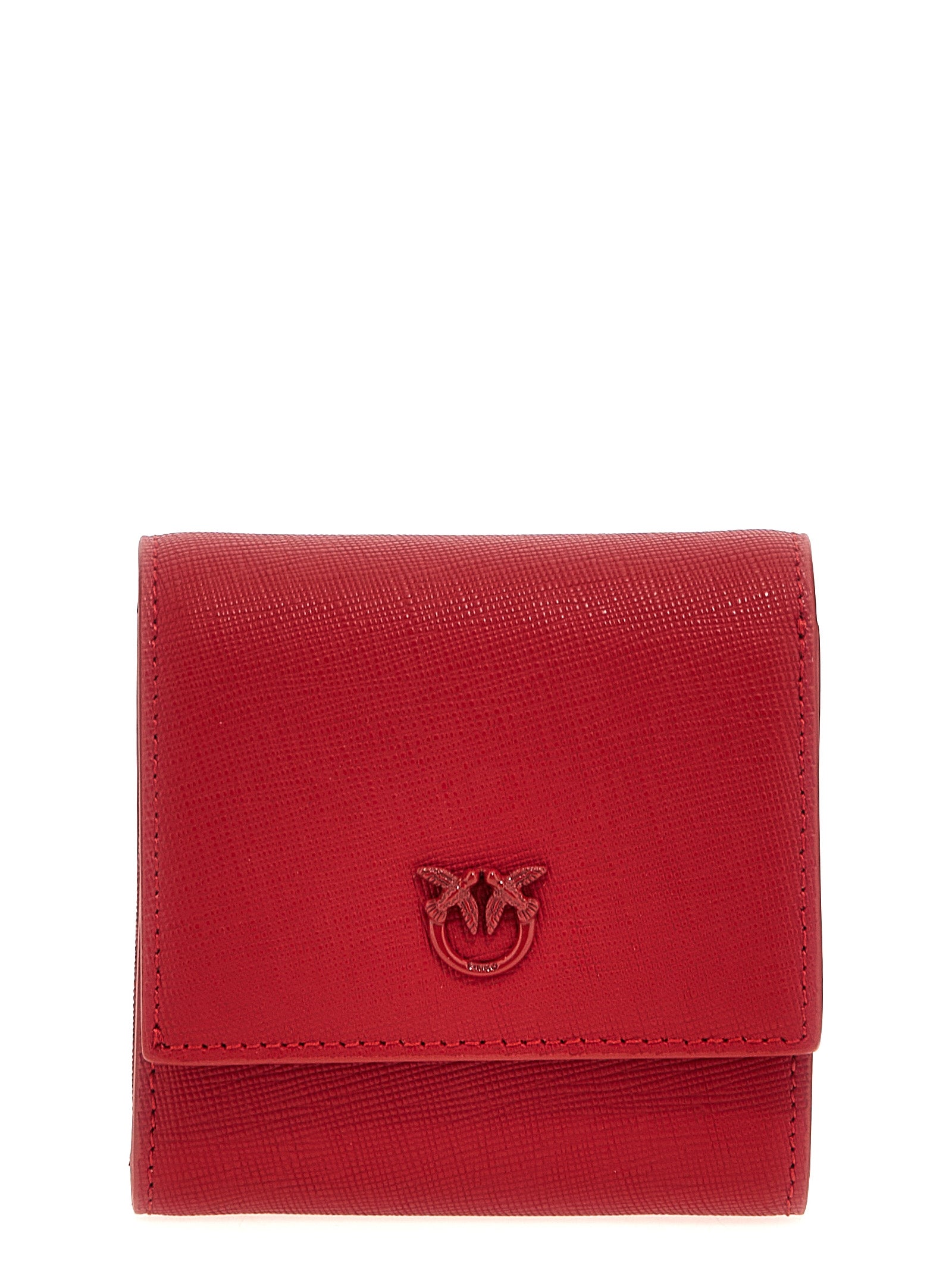 Saffiano leather 'Flap' wallet with flap closure with snap button and tone-on-tone metal logo on the front.