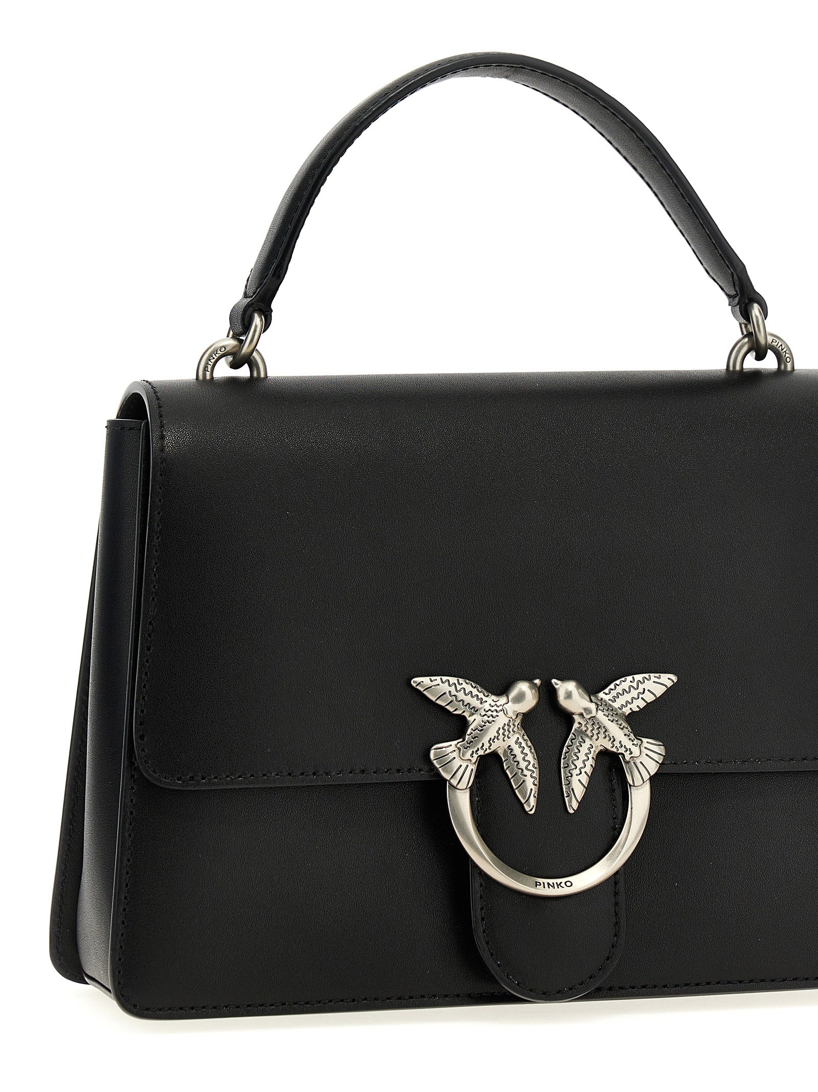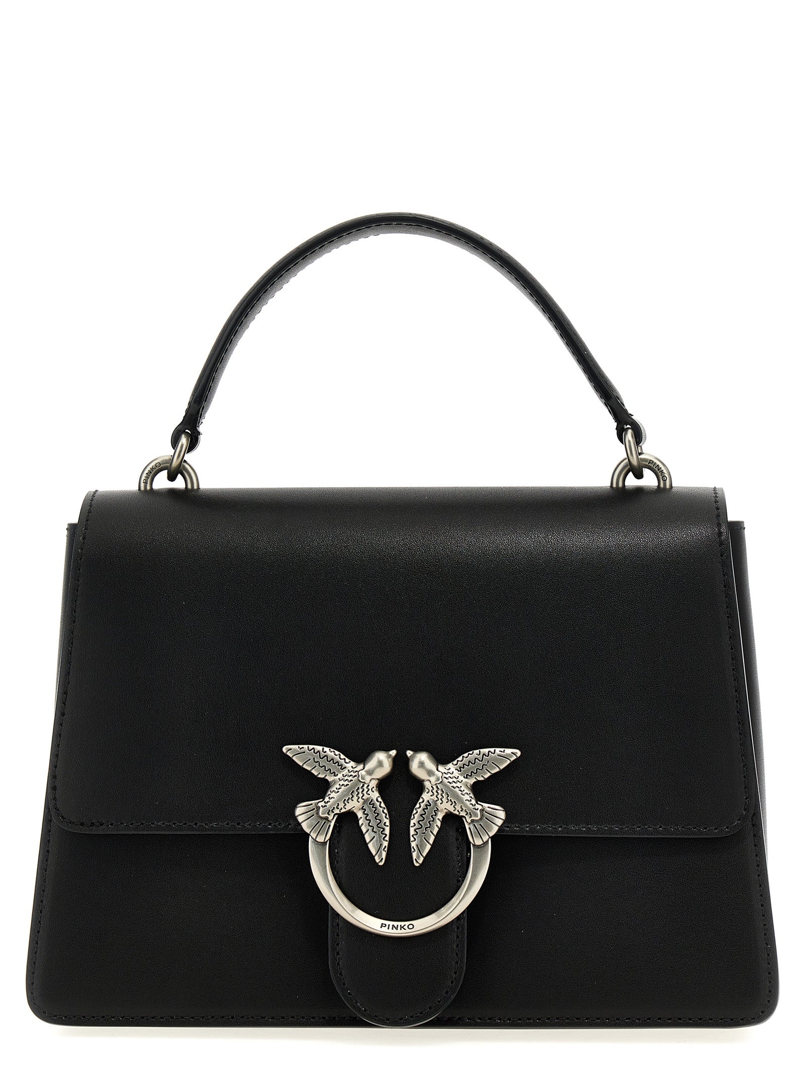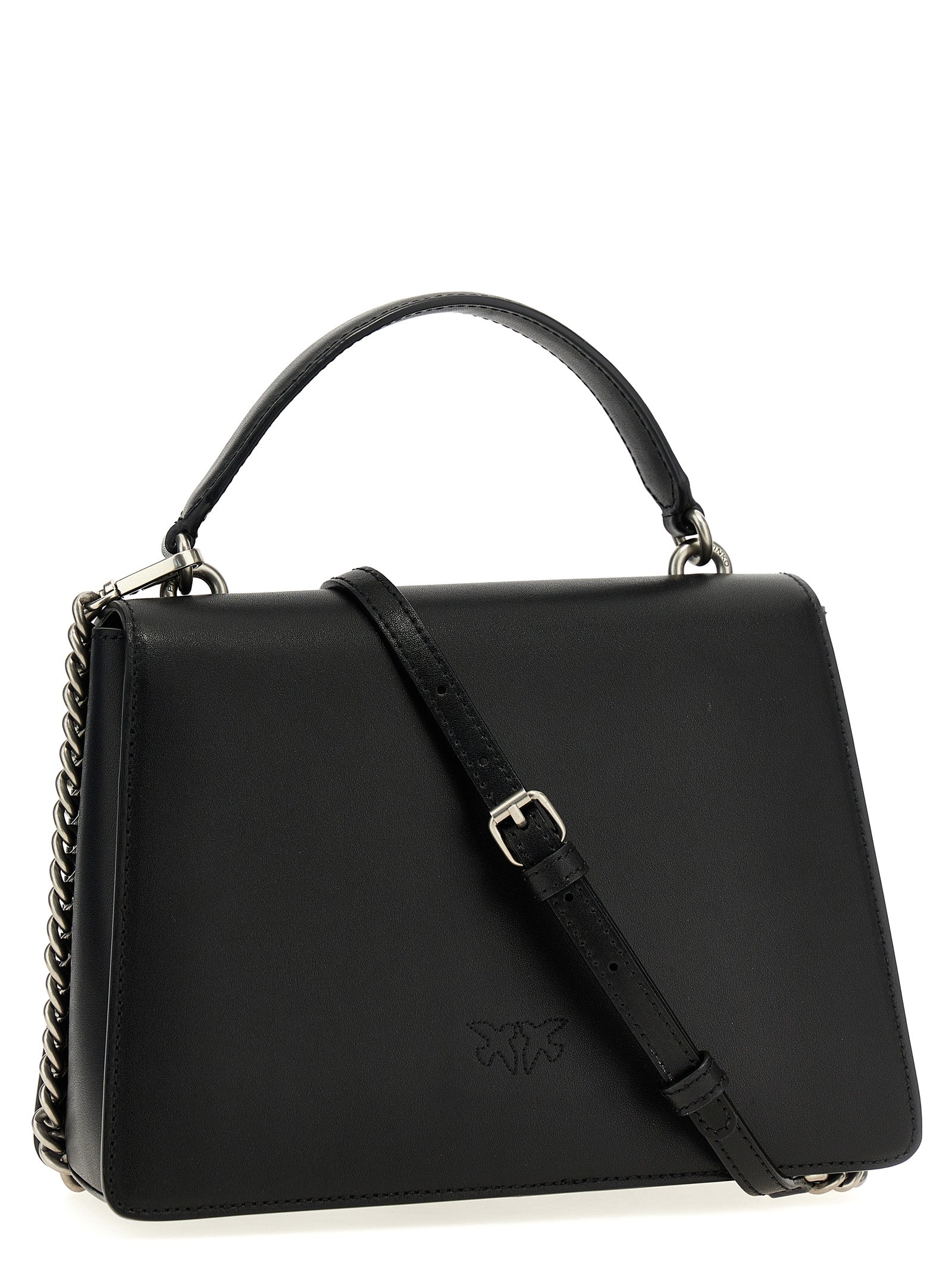 'Love one' silk leather handbag with interlocking flap closure with front metal logo, fixed handle, chain and removable leather shoulder strap.