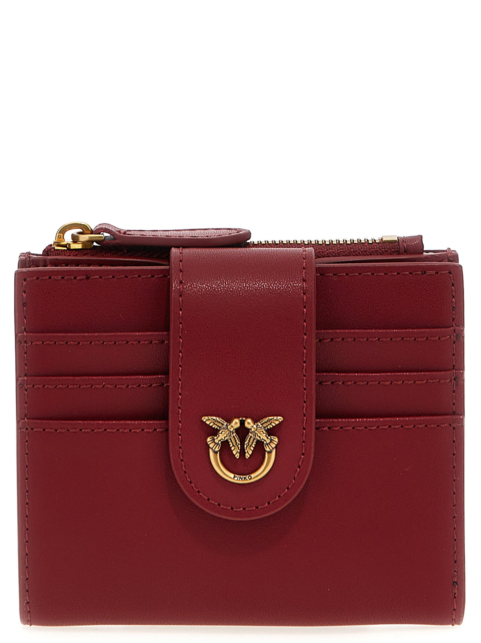 'Multi Purpose' leather wallet, button closure with metal logo appliqué, zip closure and card holder.