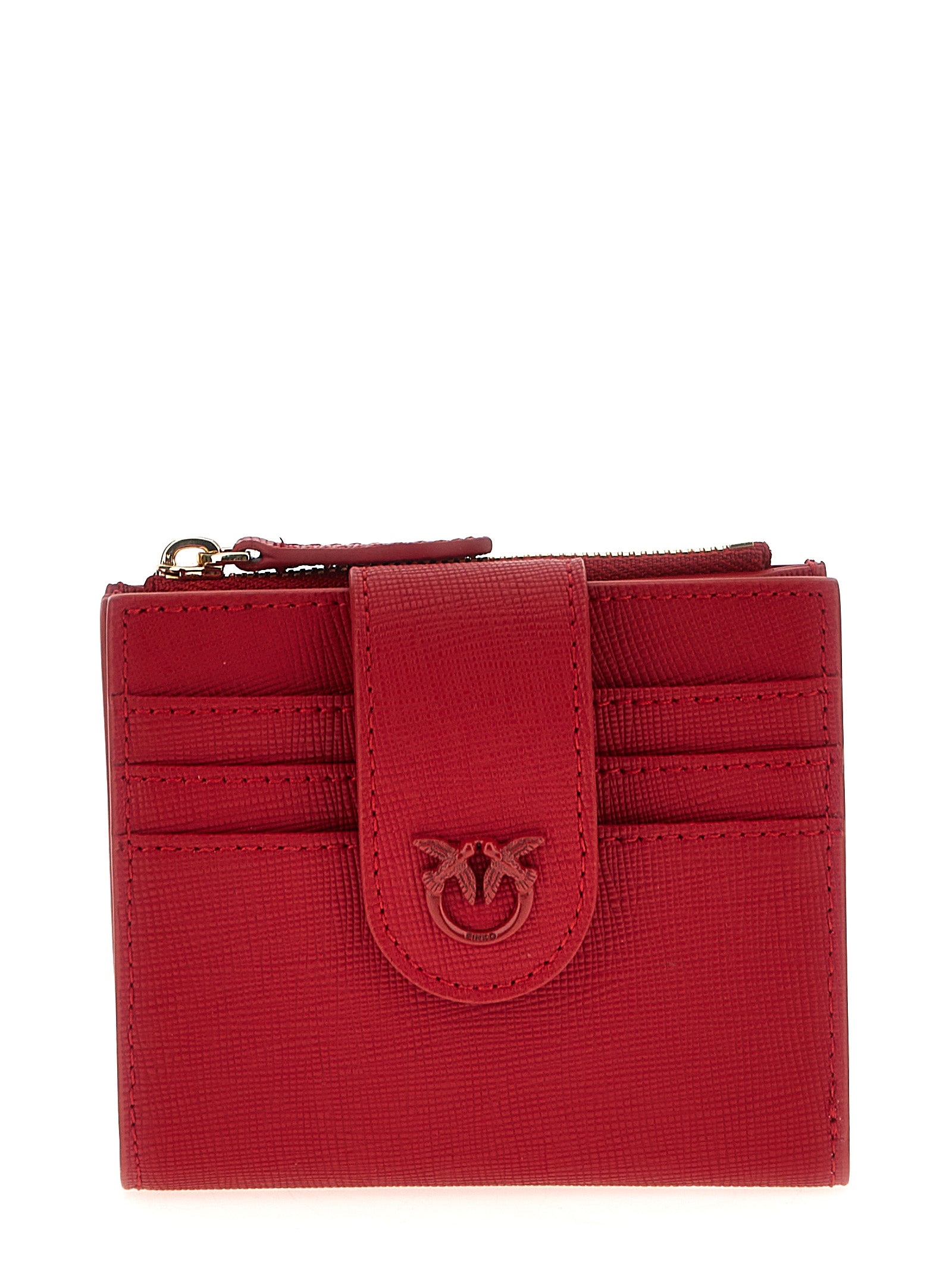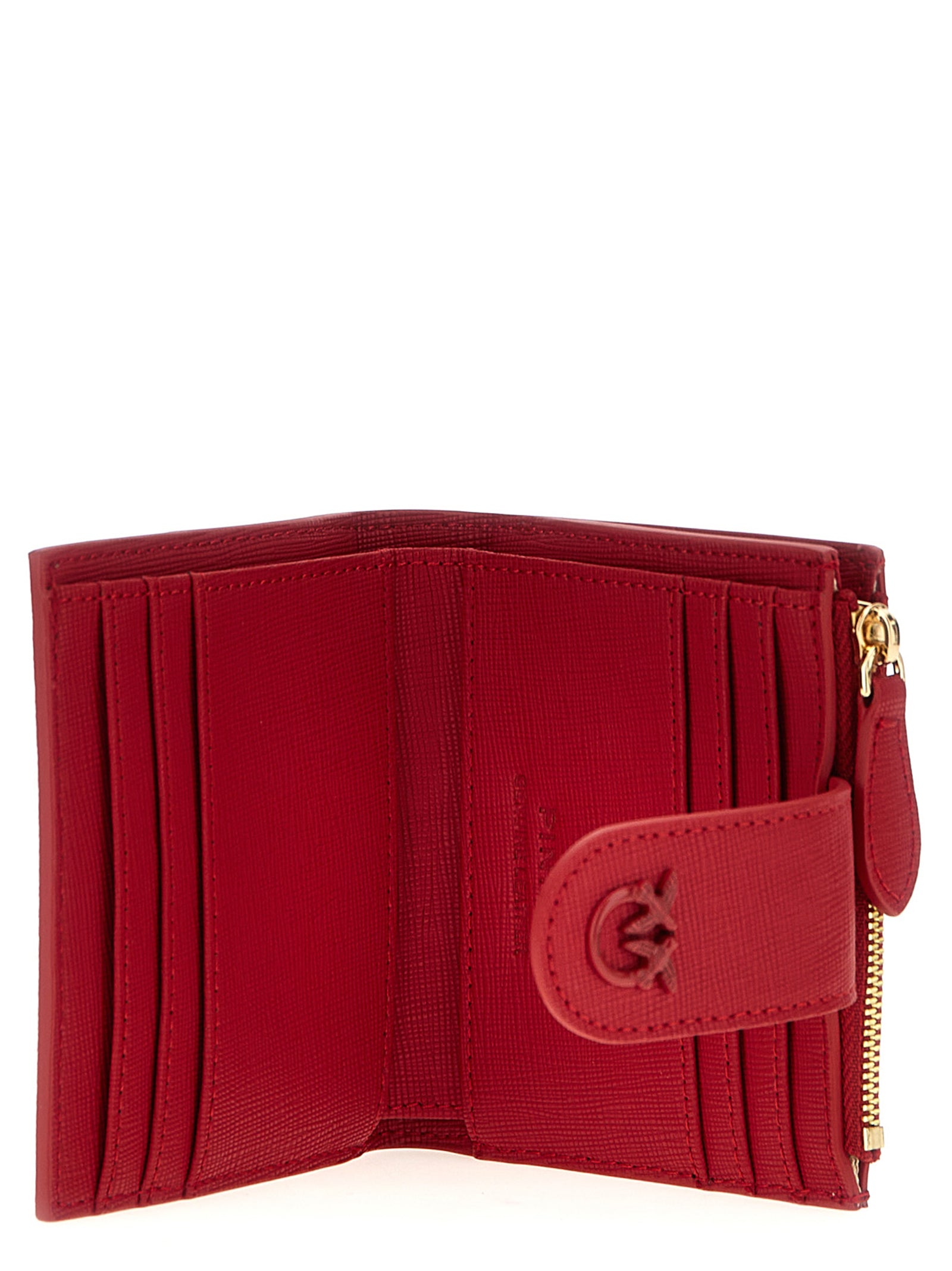 'Multi Purpose' wallet in Saffiano leather with button closure with tone-on-tone metal logo appliqué, zip closure and card holder.