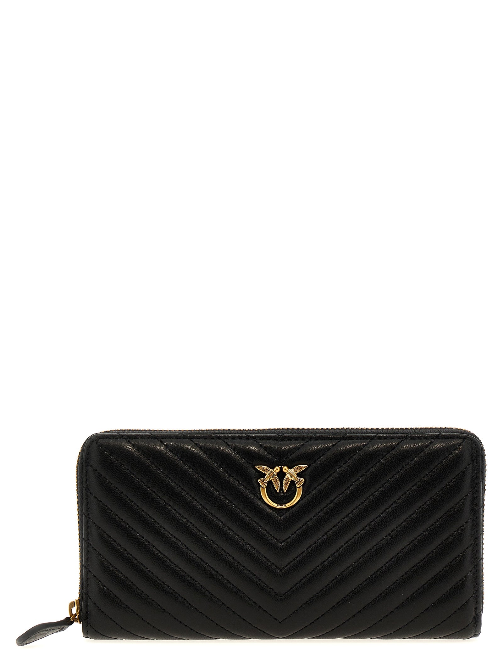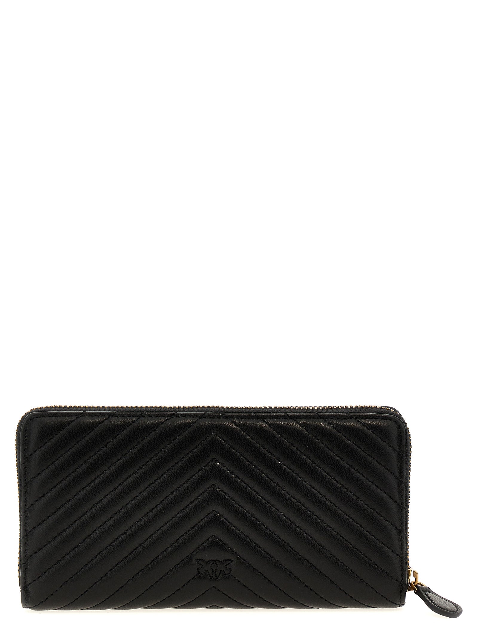 'Ryder' wallet in chevron nappa leather, front logo, zip closure.