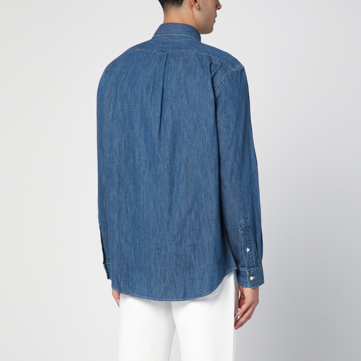 Shirt by Polo Ralph Lauren in blue cotton denim, featuring Pony embroidery on the chest, pointed button-down collar, front button placket, fitted waist design, long sleeves and button cuffs.