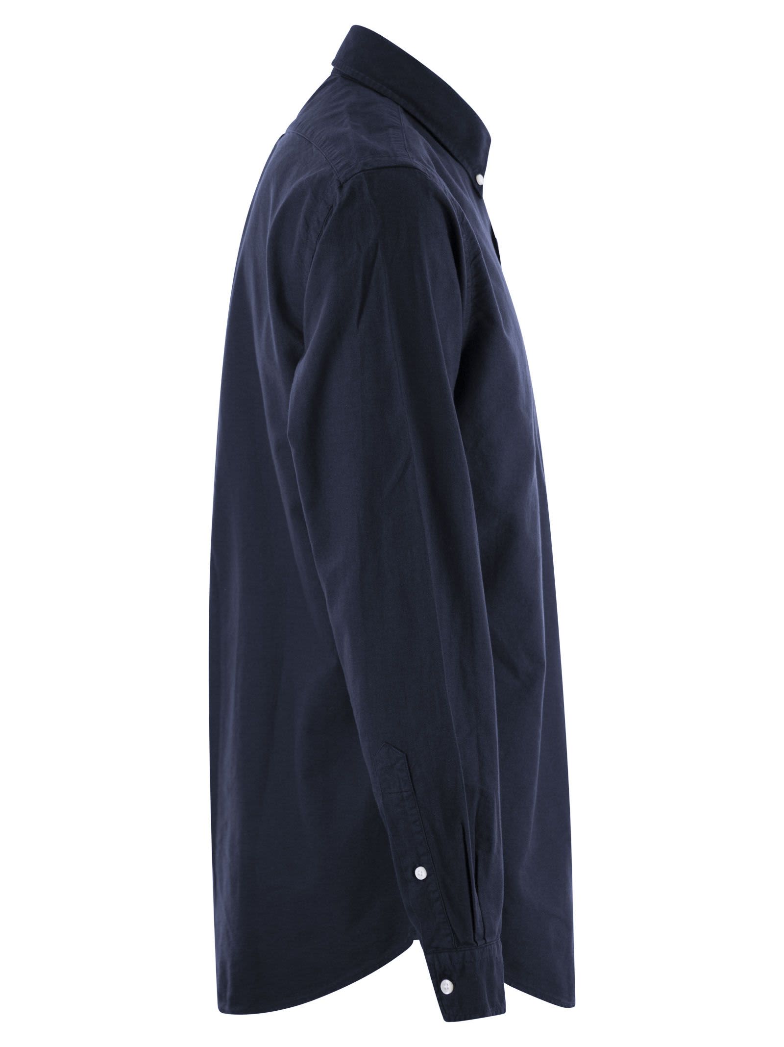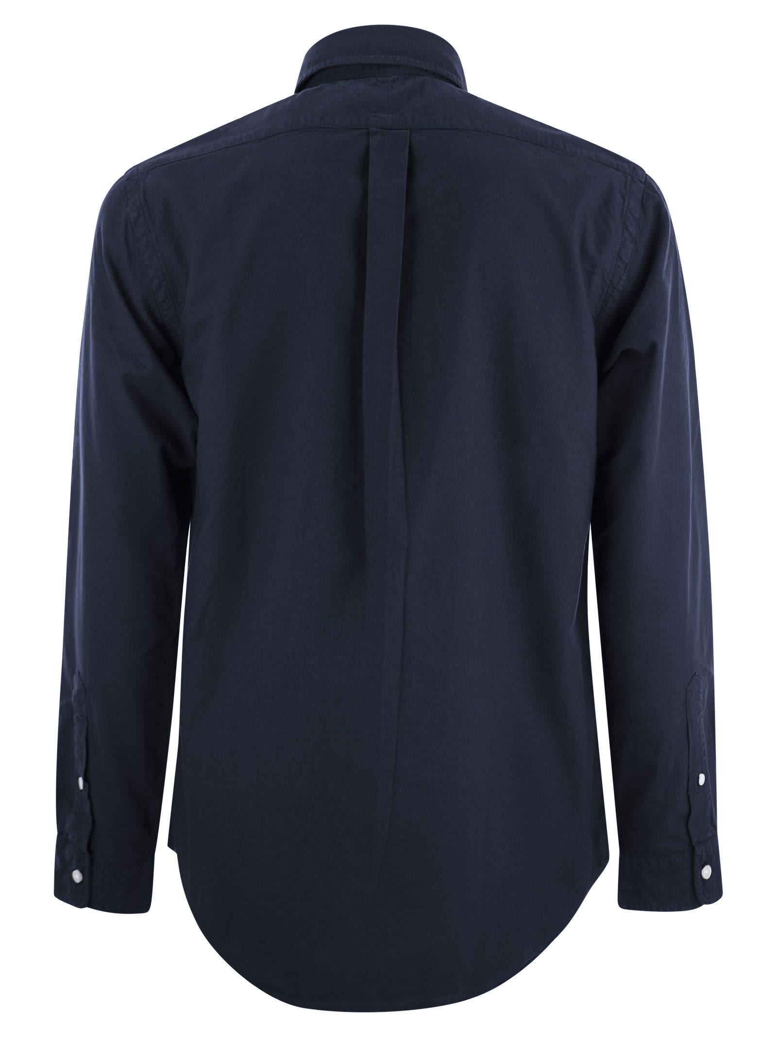 Garment-dyed and previously washed, this shaped-cut cotton shirt has a worn appearance. - Custom-Fit: a shaped silhouette, midway between the Classic-Fit and Slim-Fit models - Fitted waist - Pointed button-down collar - Button-down collar - Long sleeves with button cuffs - Divided back yoke with cannon pleats for a comfortable fit and greater freedom of movement - Exclusive embroidered Pony on left chest - Cotton DESIGNER ID: 710772290 002