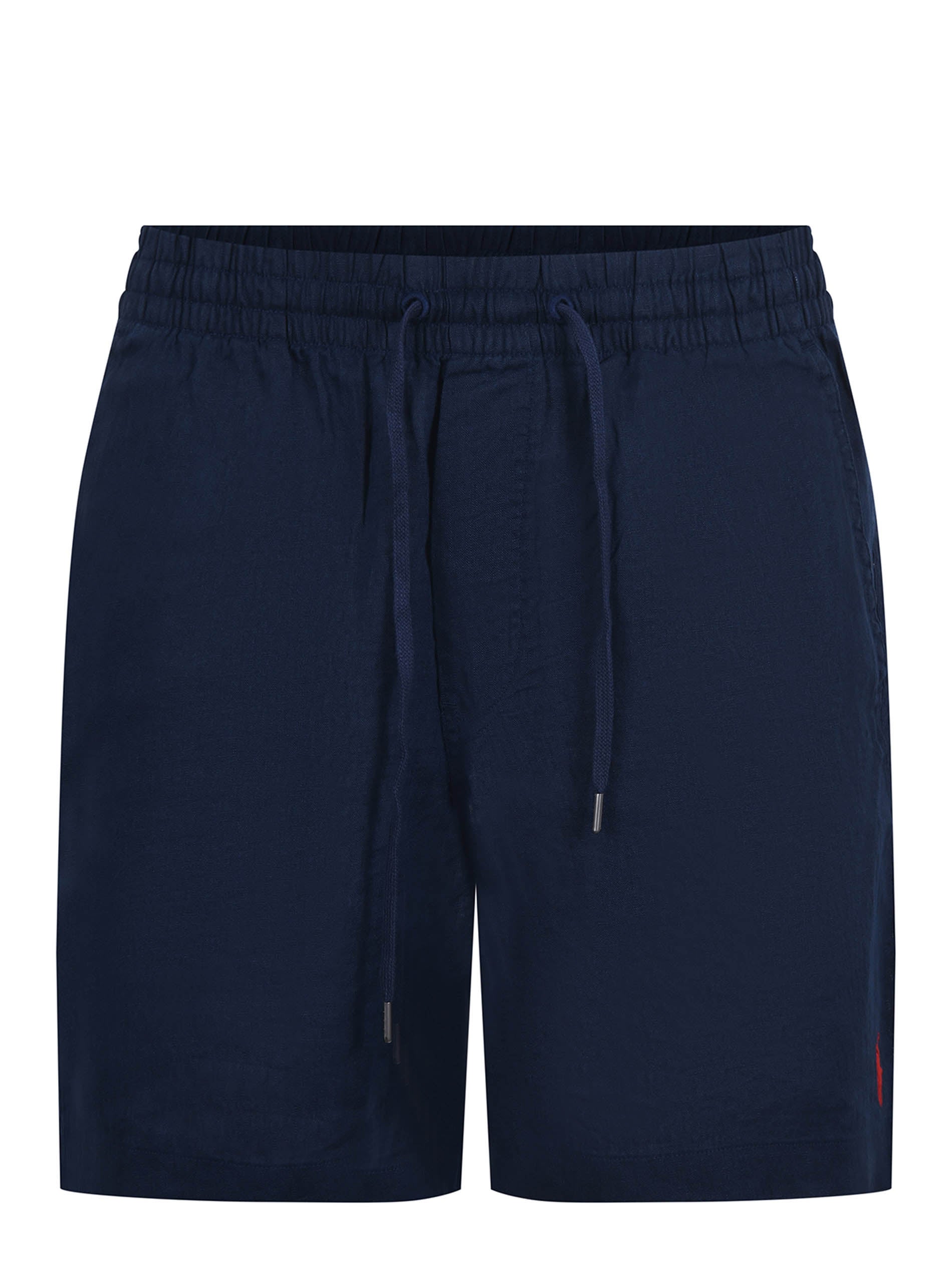 Polo Ralph Lauren linen shorts. Elastic waist with drawstring. America pockets. Welt pockets on the back. Embroidered logo on the front. Size in photo L 100% linen