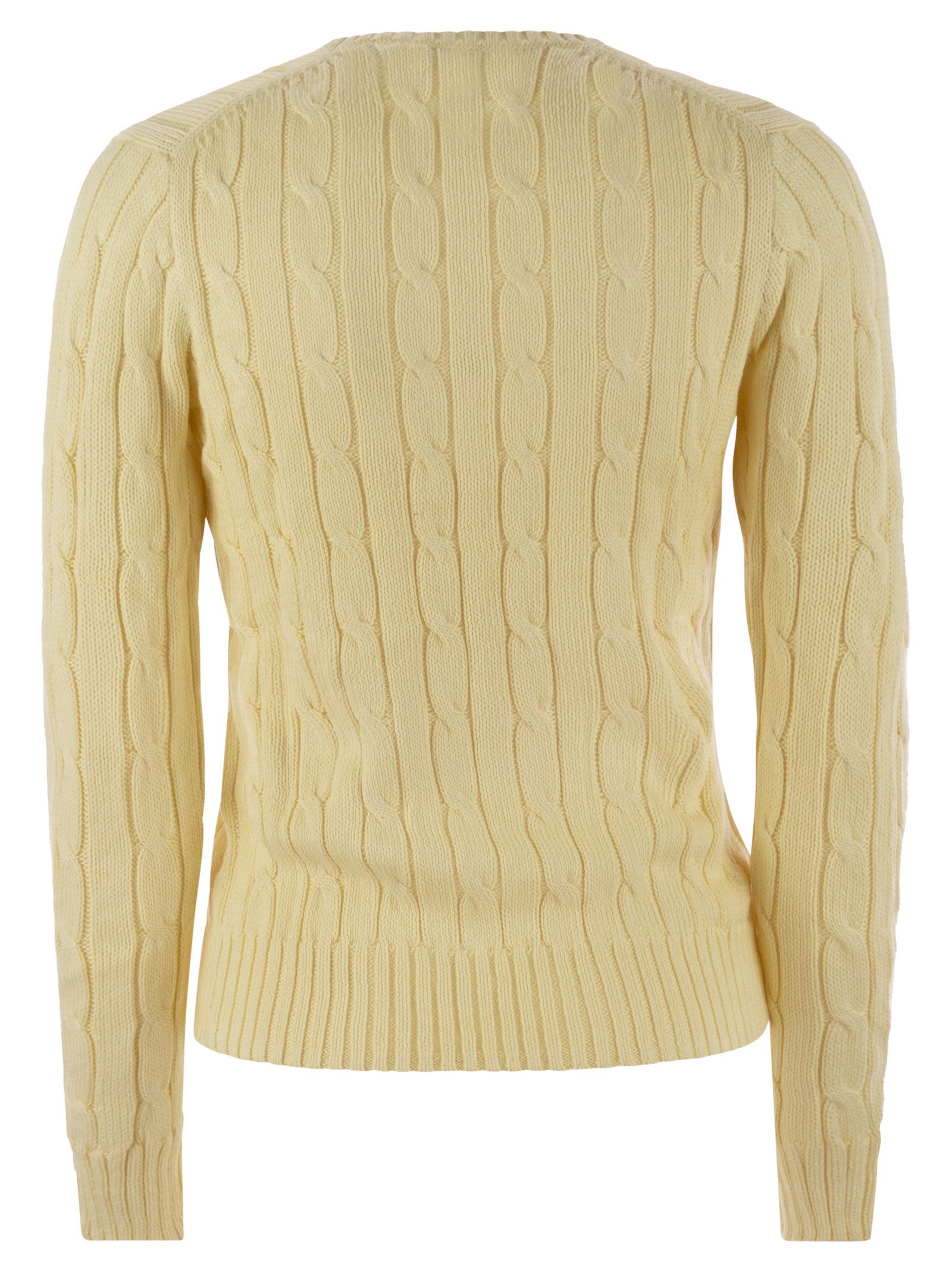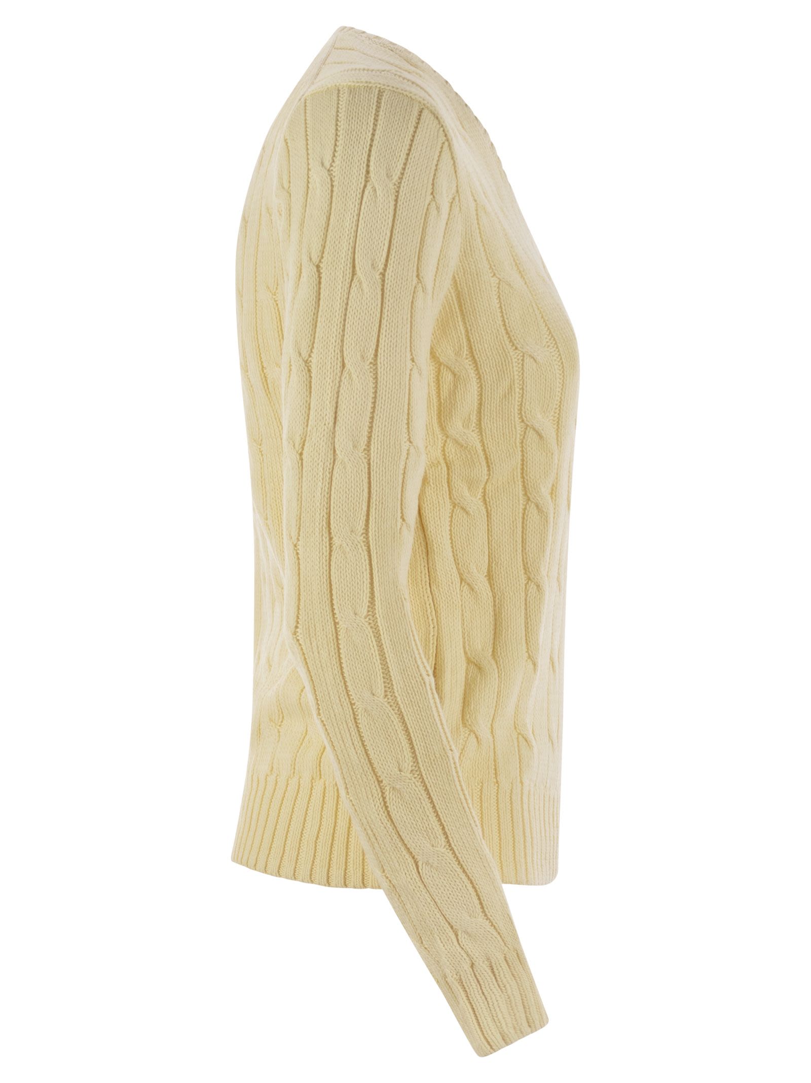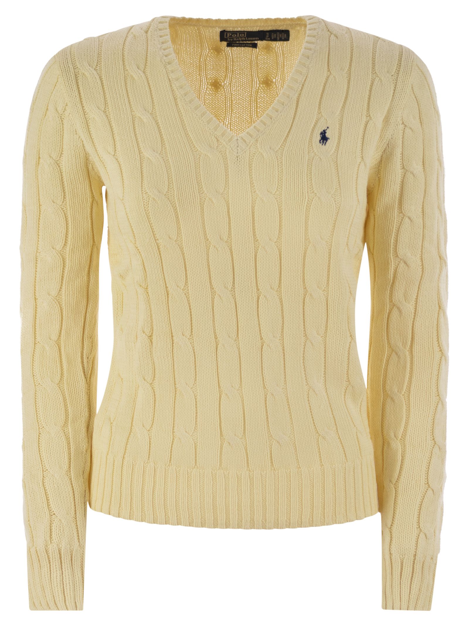 Made of soft combed cotton, this classic V-neck sweater features a cable-knit and a fitted silhouette. The embroidered pony on the chest gives the design an exclusive touch. - Slim fit - Hip length - Ribbed V-neckline - Long sleeves with ribbed cuffs - Exclusive embroidered pony on the chest - Ribbed hem DESIGNER ID: 211891641 009