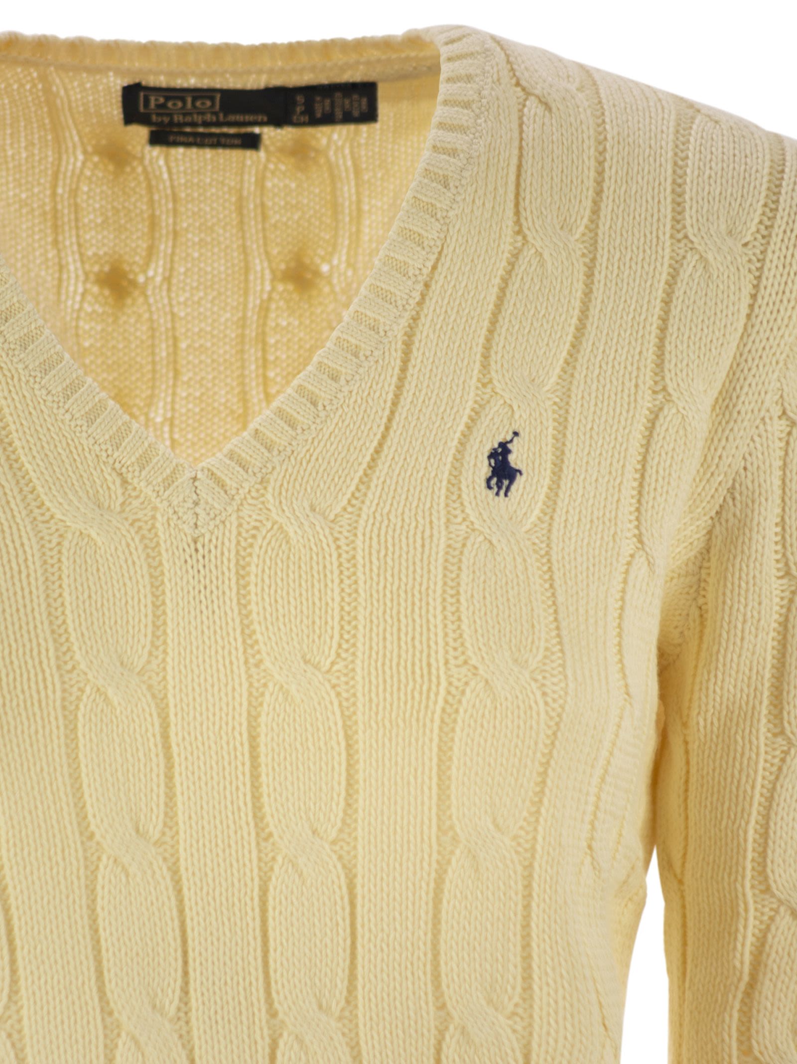 Polo Ralph Lauren Plaited Cotton V Neck Sweater