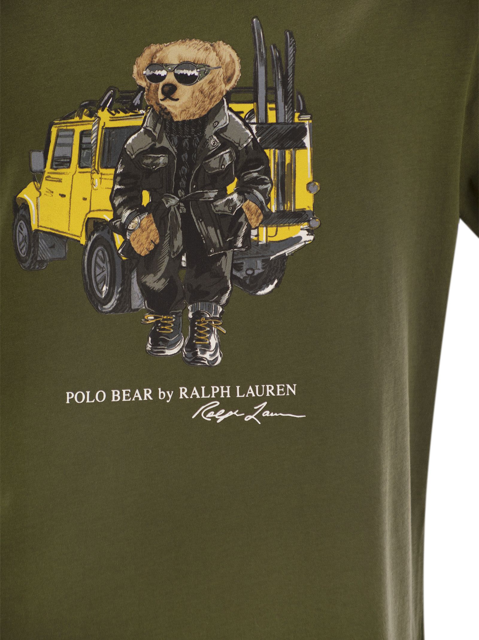This cotton T-shirt features the iconic mascot, the world's most stylish teddy bear, printed on the front. - Classic-Fit: loose fit on chest, waist and sleeves, with lowered armholes, closer to the elbow - Crew-neck - Short sleeves - Polo Bear and the words "Polo Bear by Ralph Lauren" and "Ralph Lauren" printed in the centre front DESIGNER ID: 710854497 042