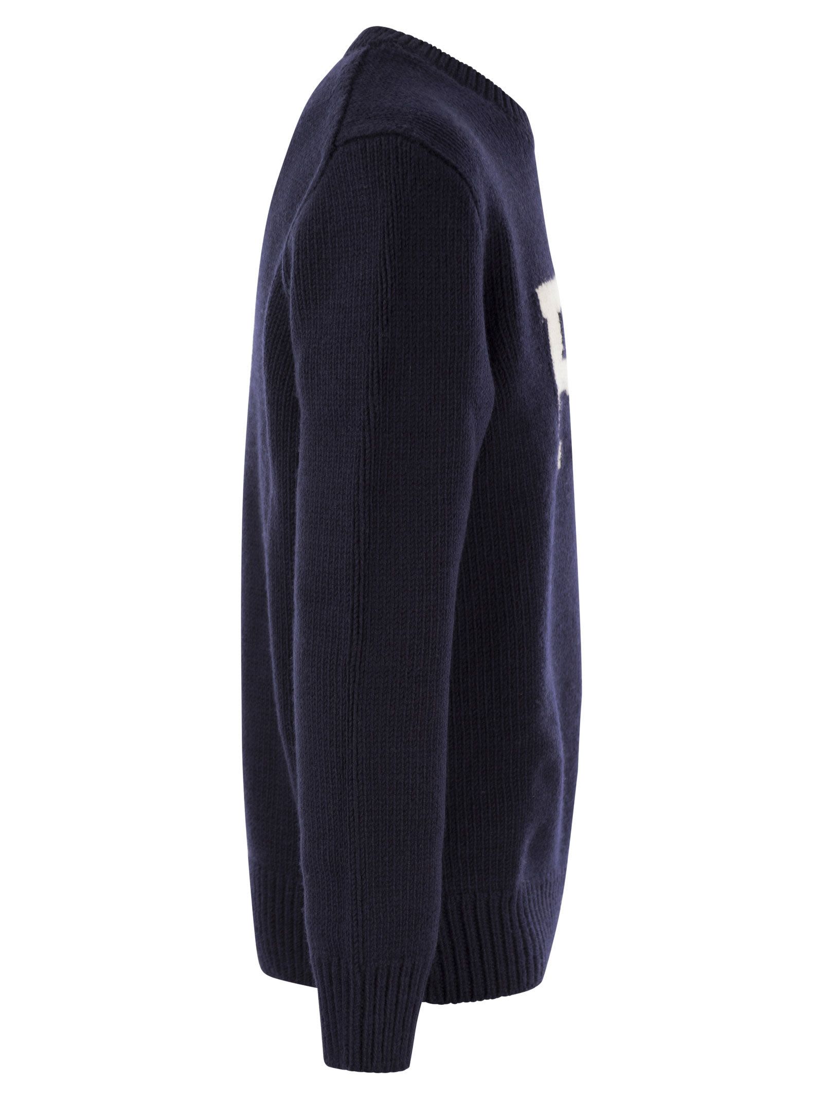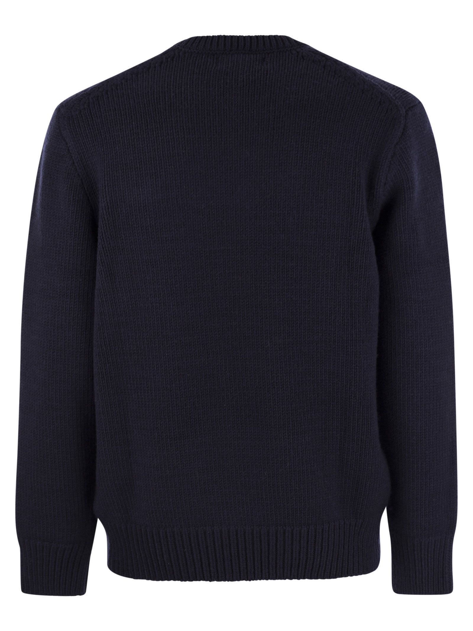 This chunky knit pattern is made in the USA from an American wool yarn and features a college-style monogrammed 'RL' graphic on the front. - Crew neck - Long sleeves with ribbed cuffs - Inlay knitted 'RL' monogram in centre front - Ribbed knit hem DESIGNER ID: 710917058 001