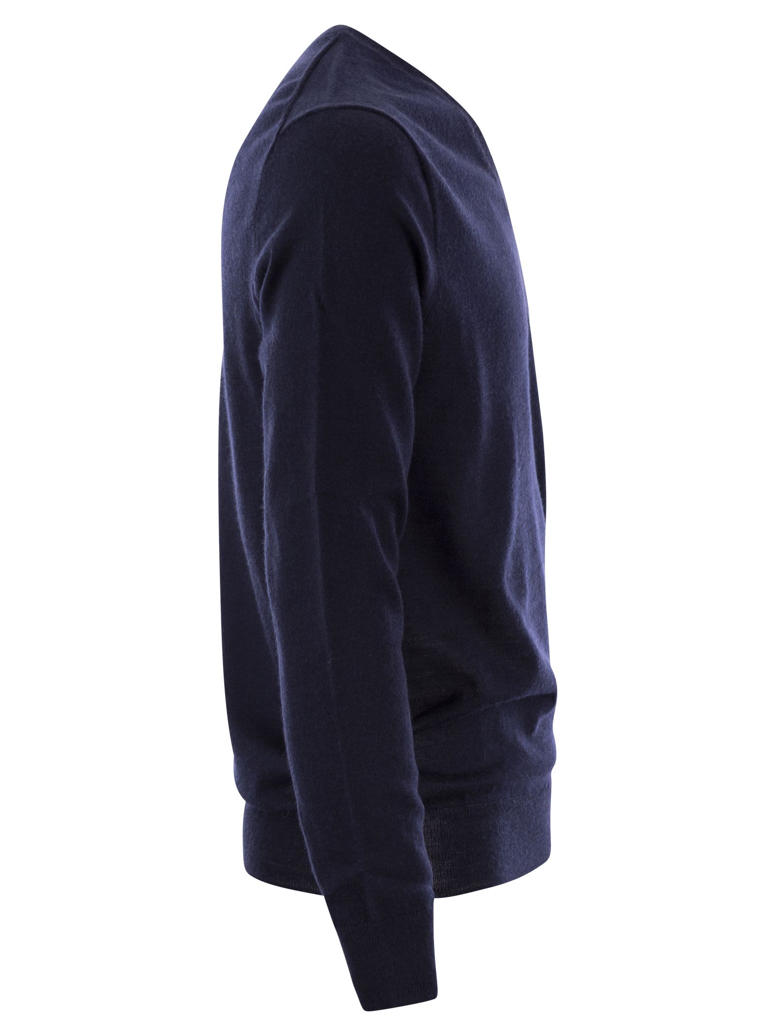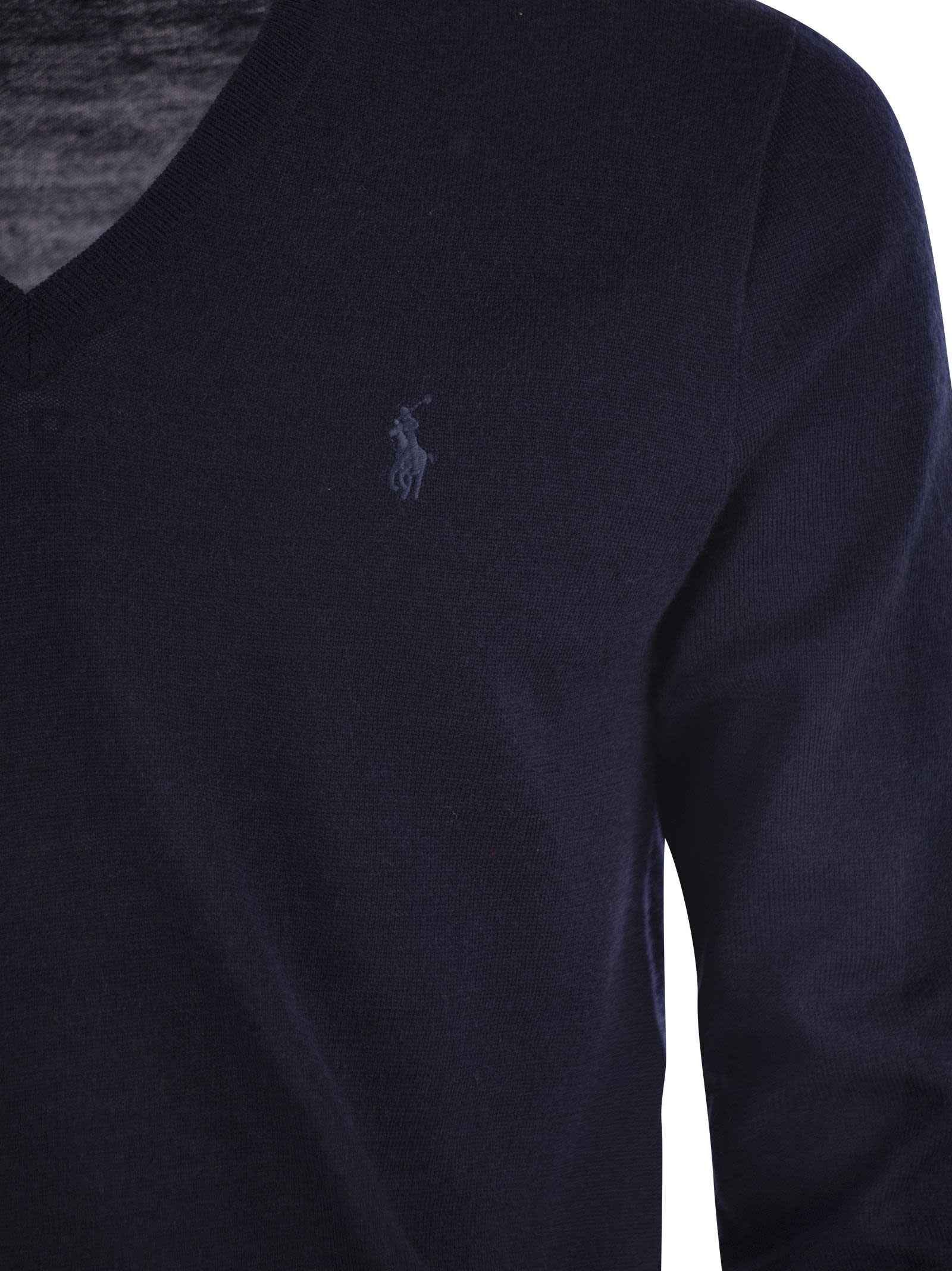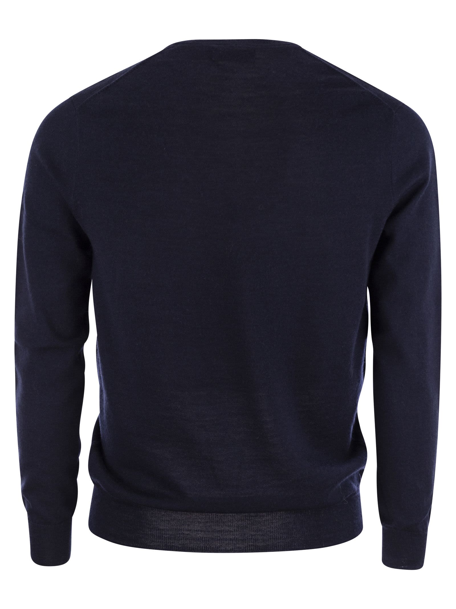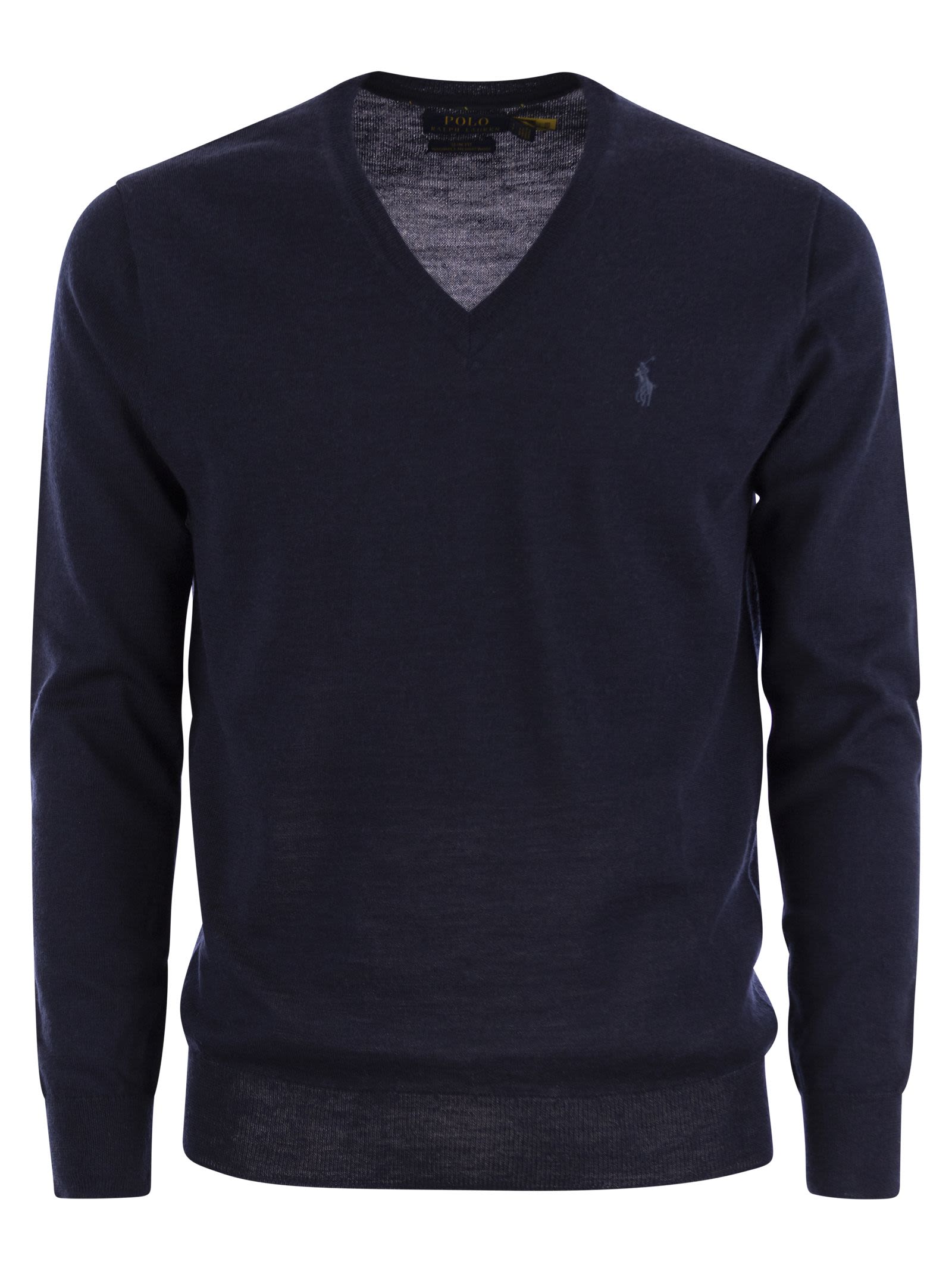The worsted wool in this sweater comes from Italy and is specially treated to make it easier to care for. - Ribbed V-neck - Long sleeves with ribbed cuffs - Ribbed hem - Exclusive embroidered pony on the left chest side DESIGNER ID: 710876848 002