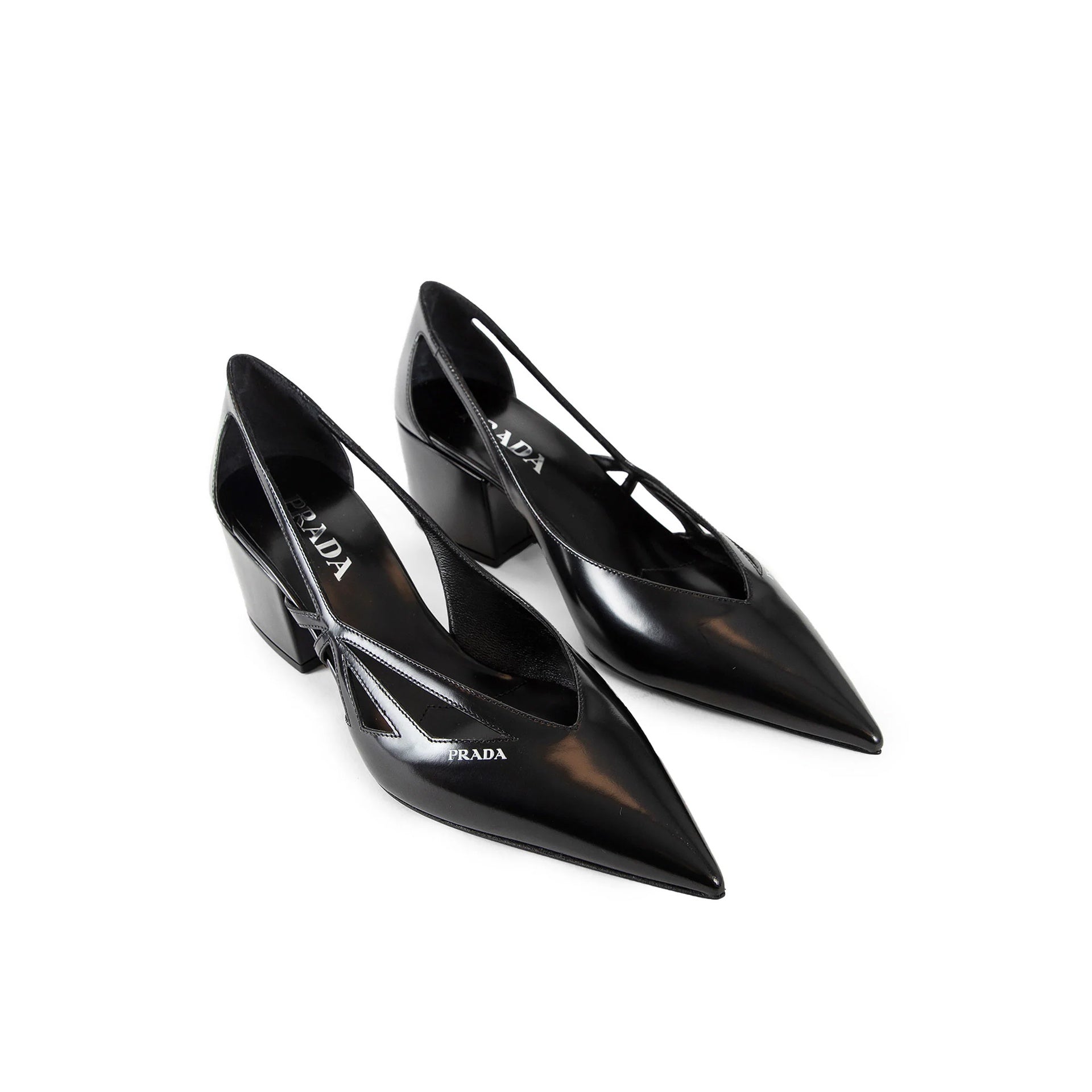 Prada Brushed Leather Cut Out Pumps
