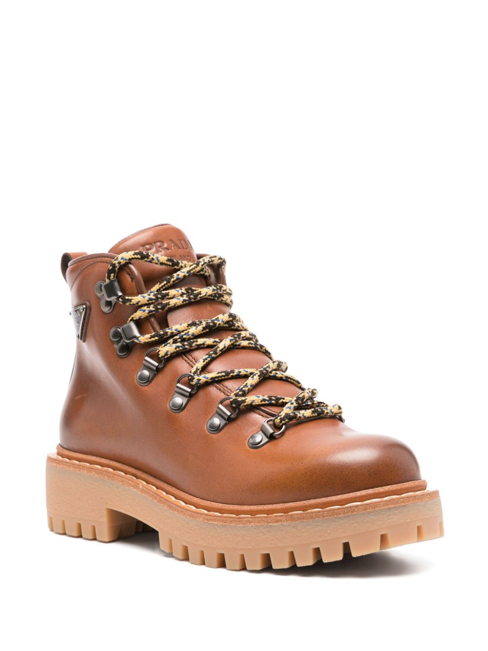 camel brown front lace-up fastening pull-tab at the heel round toe rubber lug sole